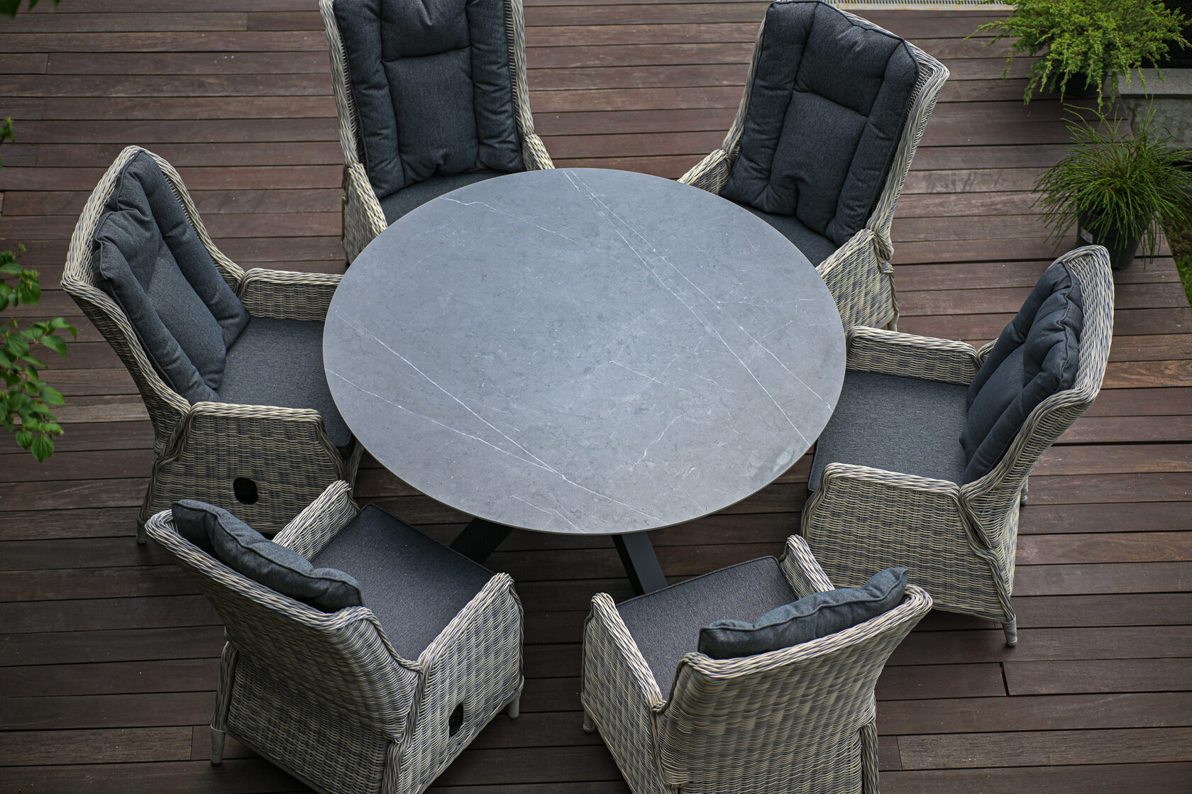 Столы со столешницей из спечённого камня Эстетика натурального камня. Надёжность современных технологий. Изысканный внешний вид, продуманная эргономика и абсолютная устойчивость к условиям эксплуатации — столы со столешницей из спечённого камня (sintered stone) становятся идеальным выбором для тех, кто ценит практичность, долговечность и дизайн. Этот материал нового поколения создан из 100% натурального сырья — минералов, полевых шпатов, кварца и оксидов. В отличие от кварцевых или акриловых аналогов, в составе спечённого камня нет смол, клеевых соединений, пластиковых примесей и химических связующих. Благодаря этому он полностью безопасен, экологичен и устойчив к любым внешним воздействиям. Преимущества, которые чувствуются в использовании каждый день: · Натуральный состав. Чистый минеральный продукт, не выделяющий вредных веществ даже при нагревании. Подходит для кухни, столовой зоны, террасы или открытых пространств. · Максимальная прочность. Поверхность устойчива к царапинам, ударам и механическим нагрузкам. Можно без опаски ставить тяжёлую посуду, посекать ножом или класть горячие предметы. · Термостойкость. Камень выдерживает высокие температуры без деформаций и повреждений. Идеально подходит для помещений с активной кухонной зоной и даже для использования на улице. · Влагостойкость и непористость. Спечённый камень не впитывает влагу и жидкости, а значит — не образует пятен, разводов и не боится проливаний. · Устойчивость к бытовой химии. Можно использовать любые моющие средства, включая кислоты и щёлочи. Столешница не тускнеет и не теряет внешнего вида со временем. · Гигиеничность. Благодаря плотной, непористой структуре на поверхности не развиваются бактерии, грибок и плесень. Это особенно важно для обеденных зон и кухонного пространства. · Экологичность. В процессе производства не используются токсичные добавки и синтетические компоненты. Материал полностью перерабатываем и безопасен для человека и окружающей среды. Универсальный дизайн — на любой вкус Спечённый камень позволяет воплощать самые разные визуальные решения. В ассортименте — разнообразие текстур и оттенков: от мраморной классики с мягкими прожилками до благородного графита, серого бетона, имитации шлифованного металла и даже дерева. Поверхность может быть матовой или полуглянцевой — в зависимости от модели. Такое разнообразие позволяет легко интегрировать стол в интерьер любой стилистики: · современный минимализм, · лофт, · скандинавский стиль, · экодизайн, · современная классика и др. Столы одинаково хорошо подходят для размещения внутри дома и на улице — на крытых верандах, террасах, в зоне отдыха у бассейна или в летней кухне. Устойчивость к УФ-лучам и перепадам температуры делает их надёжным решением даже при интенсивной эксплуатации на открытом воздухе. Функциональность и комфорт Каркас и ножки столов выполнены из прочных, устойчивых к коррозии материалов. Конструкция рассчитана на ежедневное использование и выдерживает значительные нагрузки. Продуманная геометрия делает столы удобными для размещения всей семьи или компании гостей. Сделано для жизни — на годы вперёд Столы из спечённого камня — это инвестиция в комфорт, эстетику и долговечность. Они не выходят из моды, сохраняют внешний вид спустя годы и не требуют сложного ух