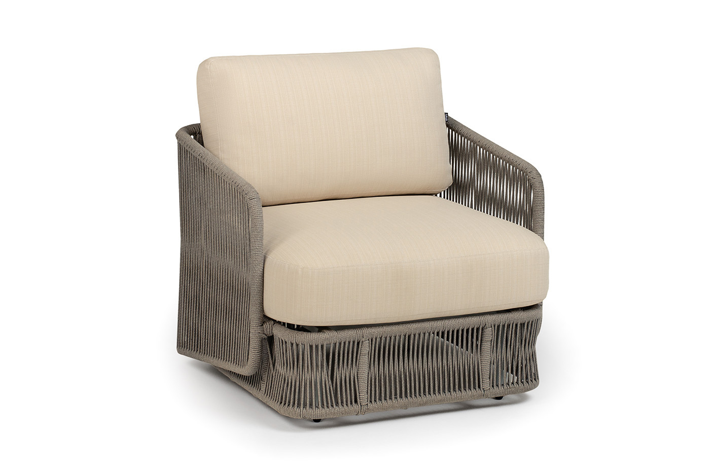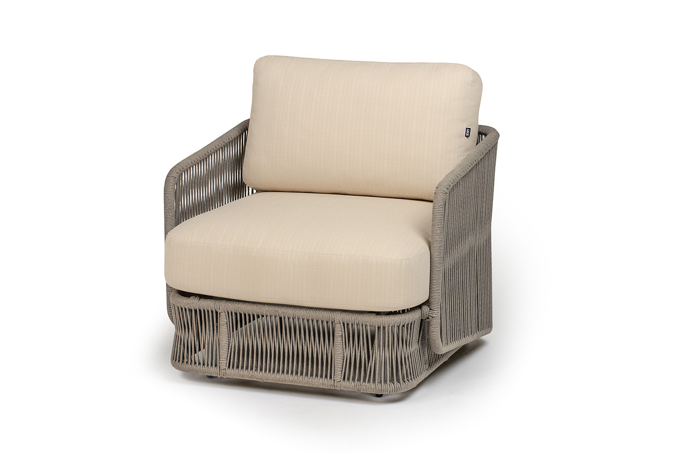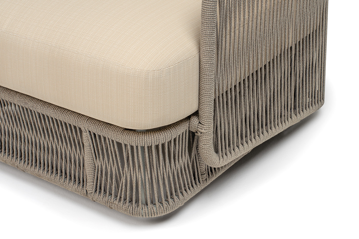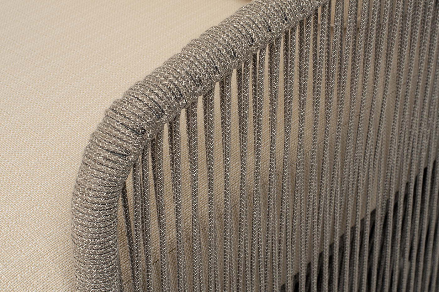 "Альбано" кресло плетеное из роупа, каркас алюминий светло-серый (RAL7035) муар, роуп серый меланж круглый, ткань Mossle светло-бежевая | |