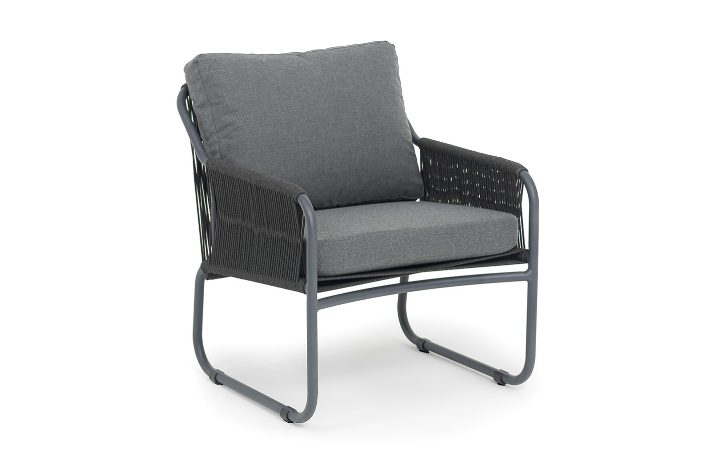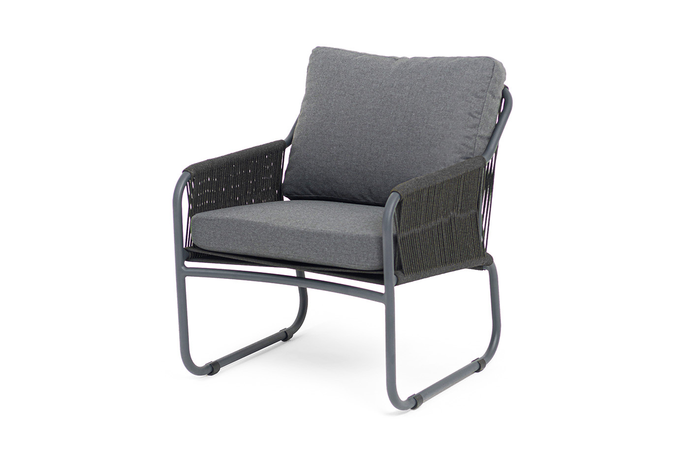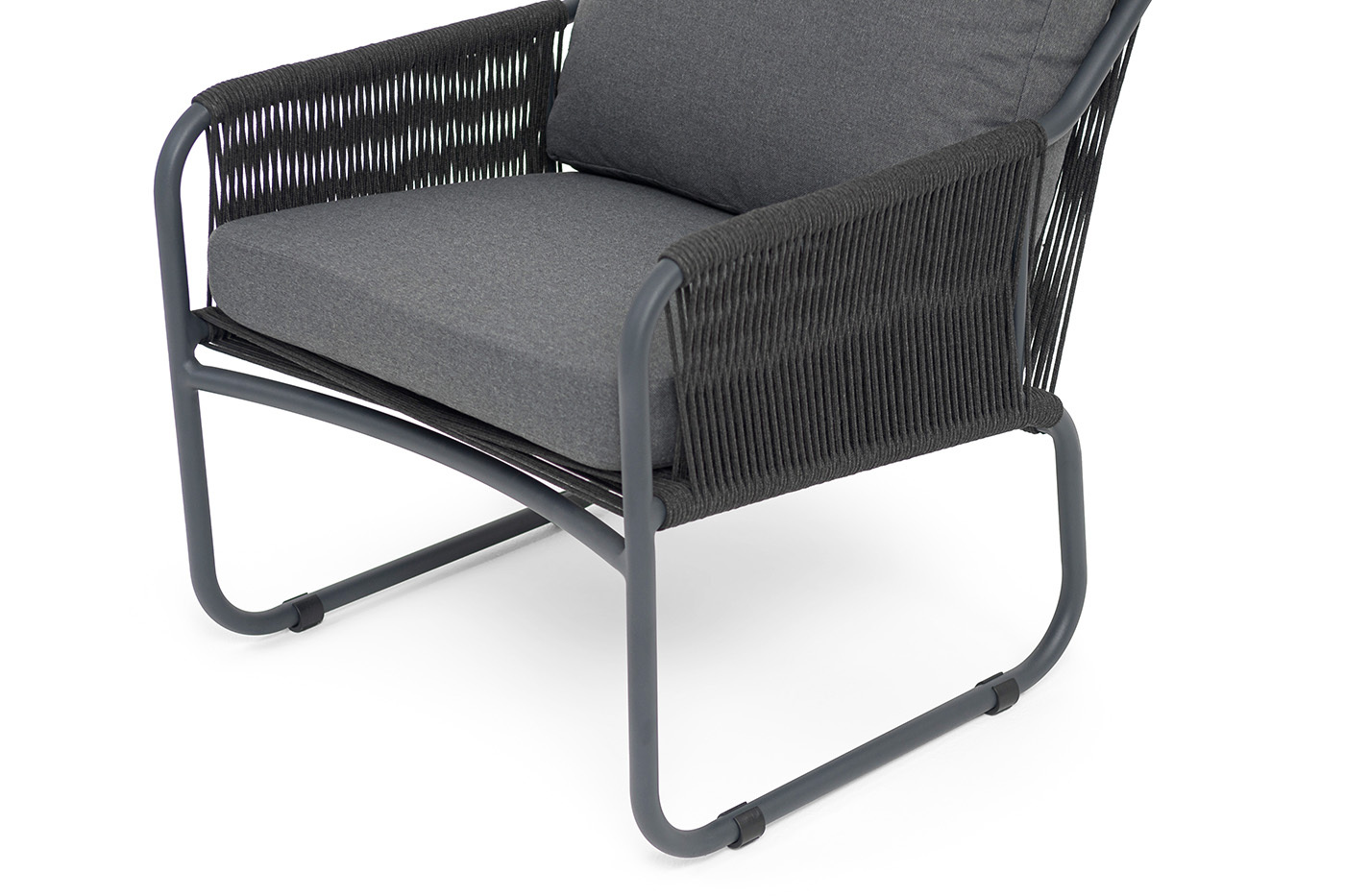 "Ането" кресло плетеное из роупа, каркас алюминий темно-серый (RAL7024) муар, роуп темно-серый круглый, ткань темно-серая 027 | |