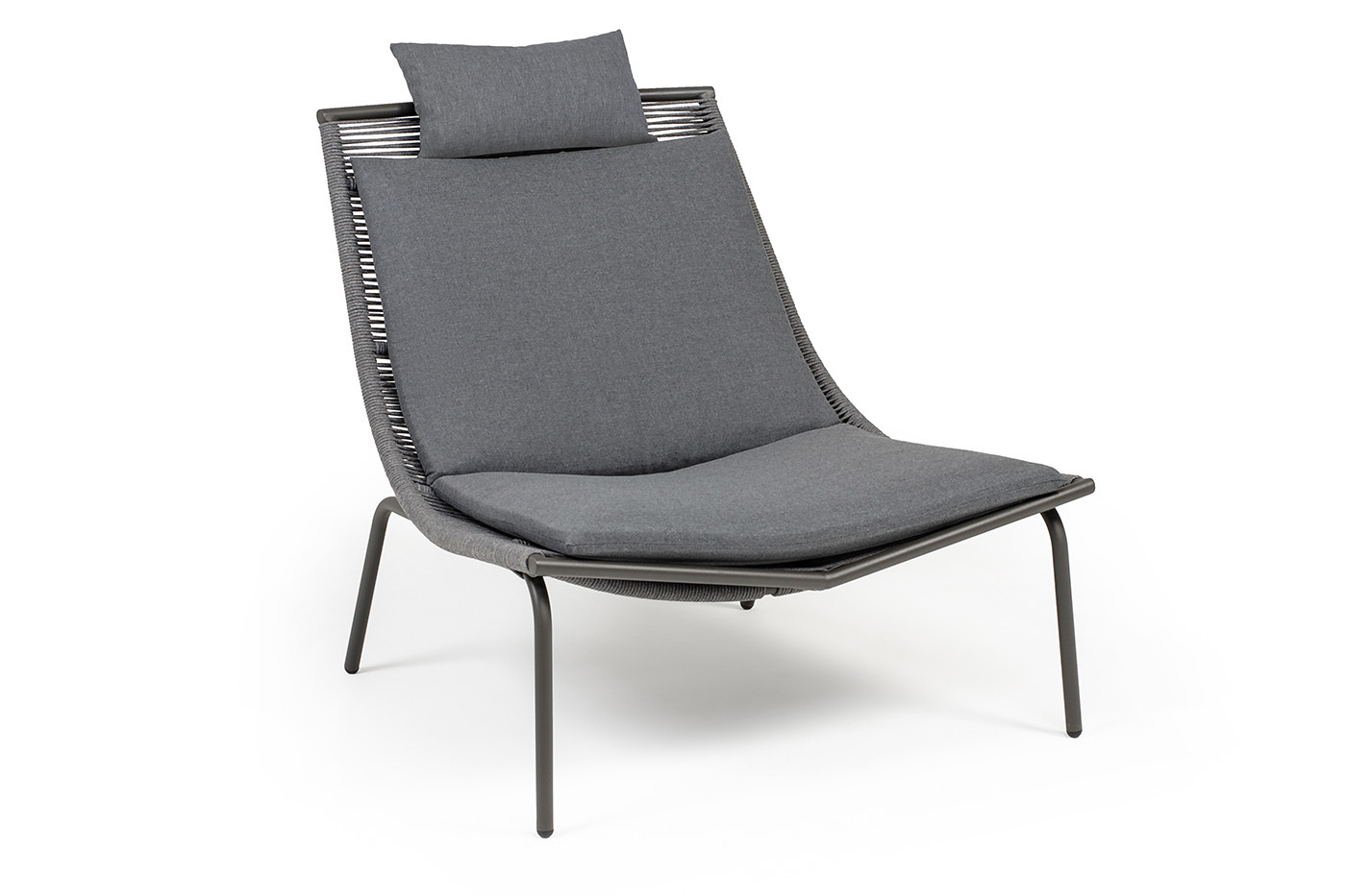 "Авиньон" кресло плетеное из роупа, каркас алюминий серый (RAL7022) муар, роуп серый круглый, ткань темно-серая 027 | |