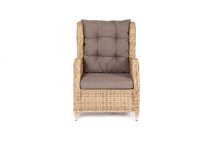 Многофункциональное раскладное кресло «Форио» дает возможность практично обустроить любую зону отдыха. В собранном виде его можно использовать в качестве обеденного стула, а с откидной спинкой – в качестве удобного лежака. Размер модели – 730×830×1015 мм. В основе мебели находится алюминиевый каркас высокой прочности, который оплетен круглым искусственным ротангом. Представлена в натуральном соломенном оттенке. Садовое кресло дополнено практичными подушками для комфортного размещения. Они выполнены в сером цвете из полиэстера, плотность которого достигает 300гр/м2. Материал имеет влагоотталкивающую пропитку.Бренд | 4SIS |