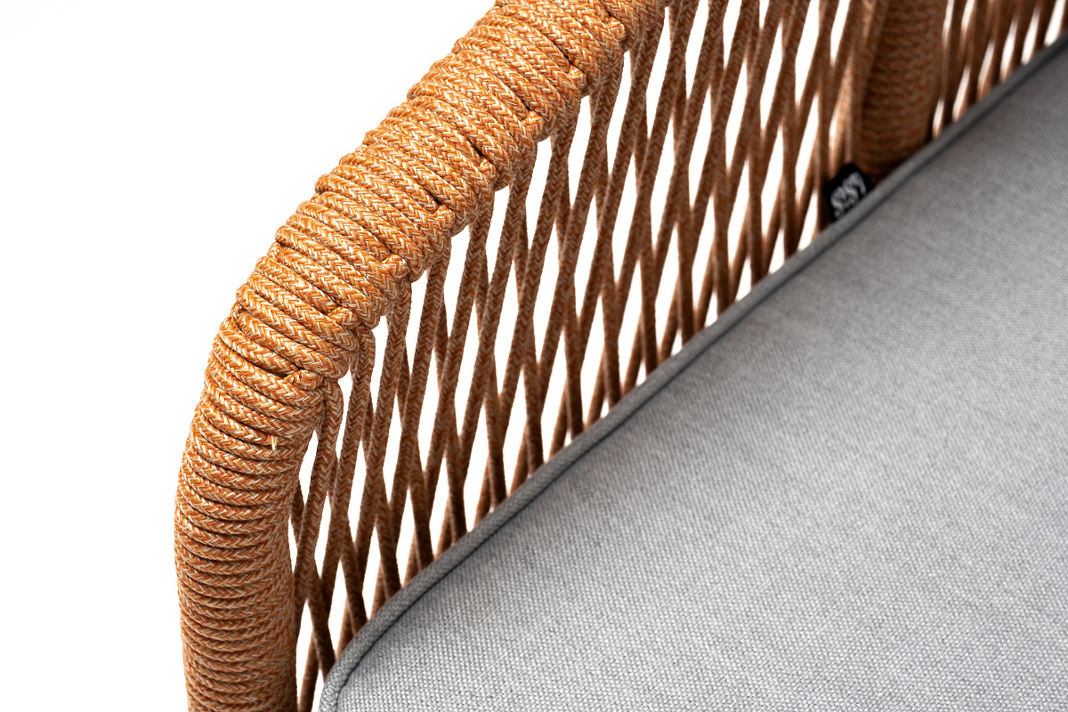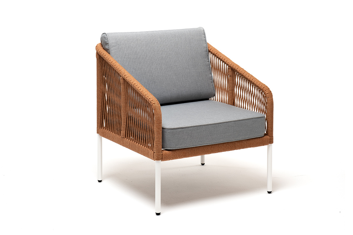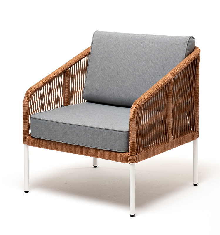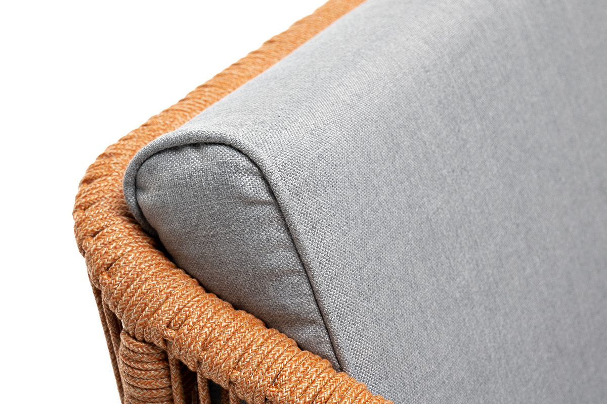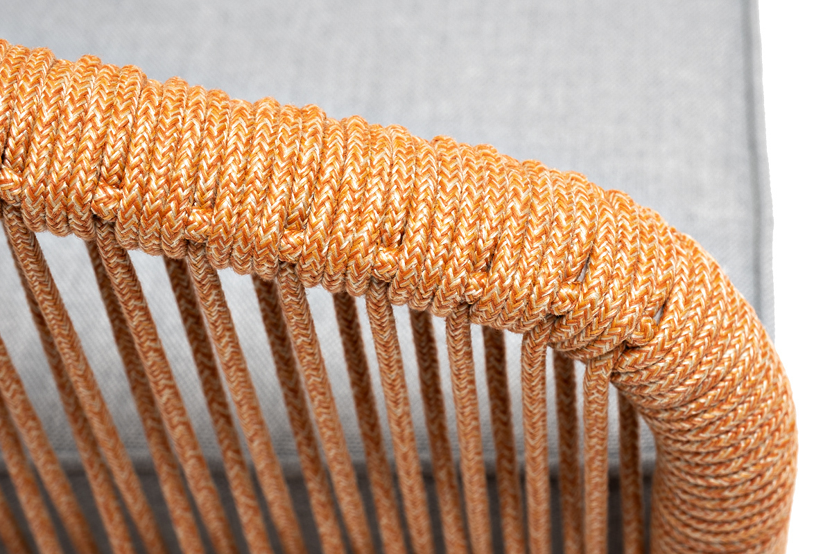 "Канны" кресло плетеное из роупа, каркас алюминий светло-серый (RAL7035) муар, роуп оранжевый меланж круглый, ткань светло-серая | |