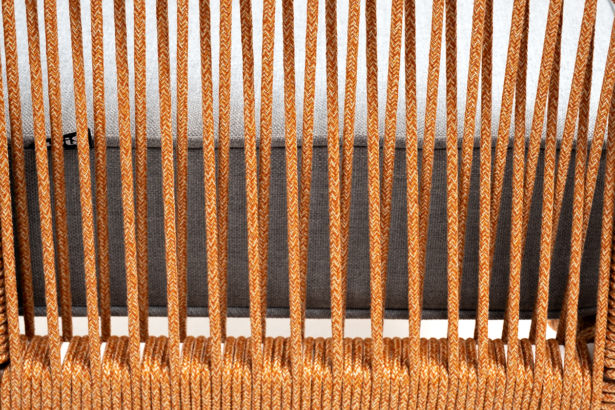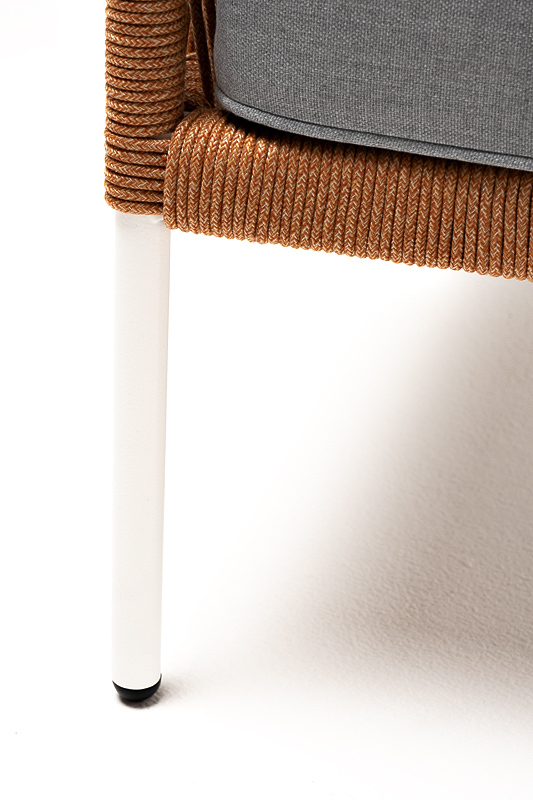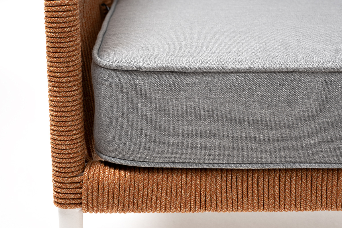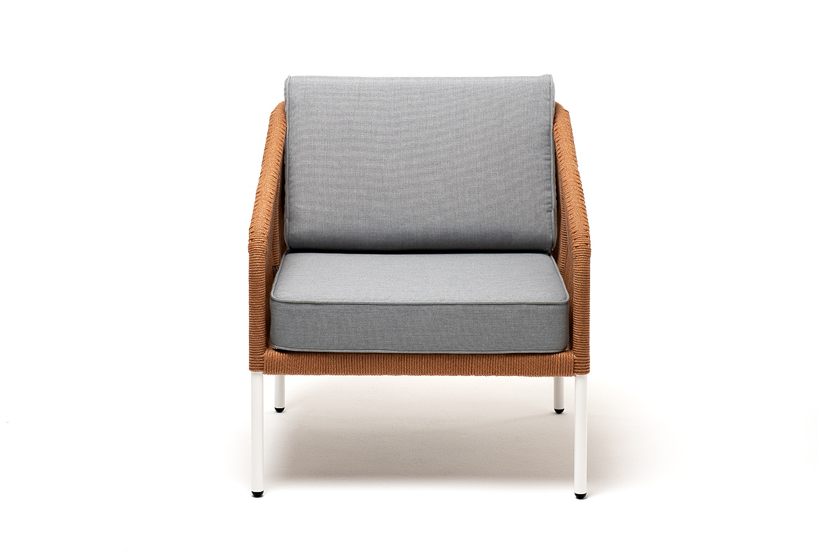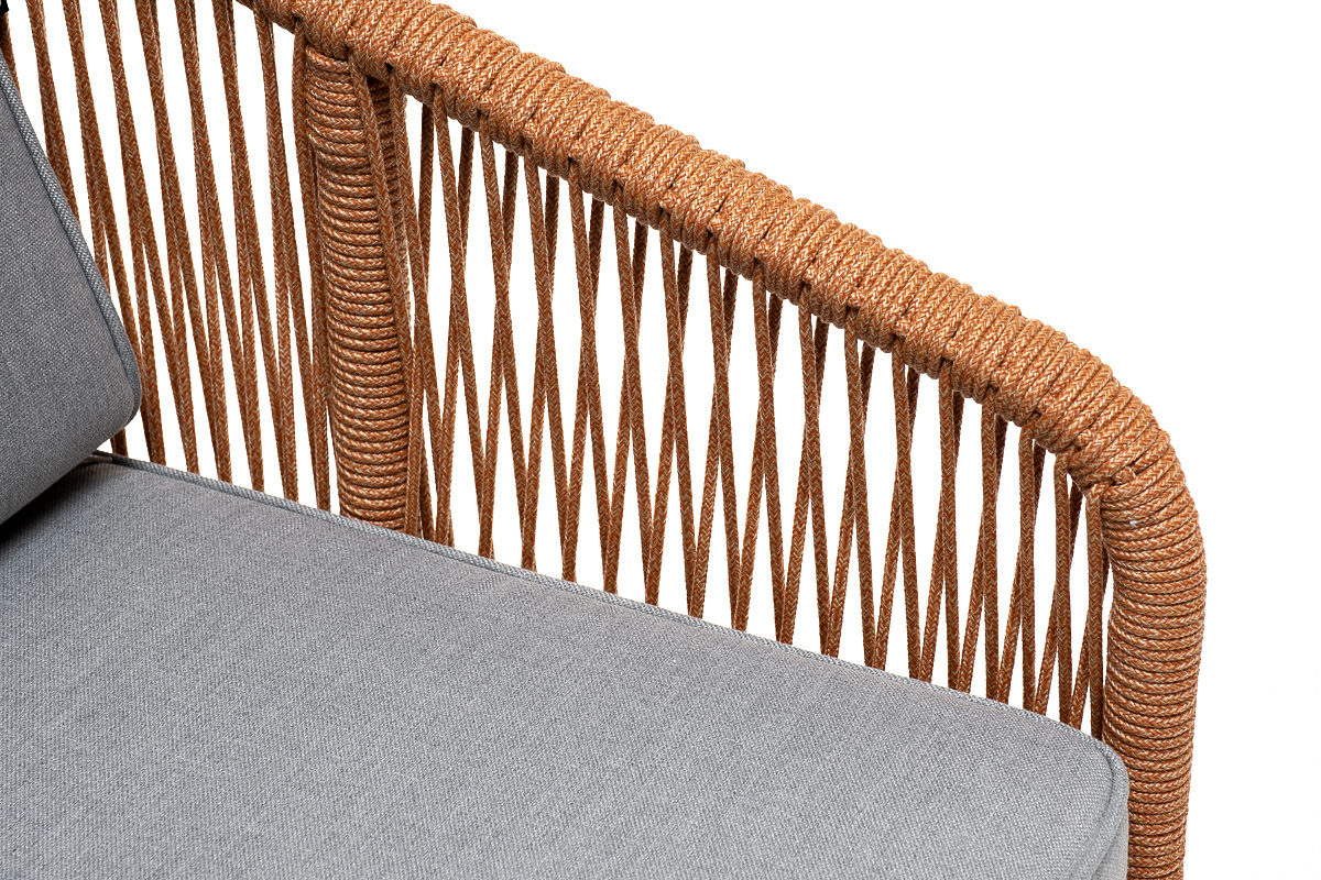"Канны" кресло плетеное из роупа, каркас алюминий светло-серый (RAL7035) муар, роуп оранжевый меланж круглый, ткань светло-серая | |