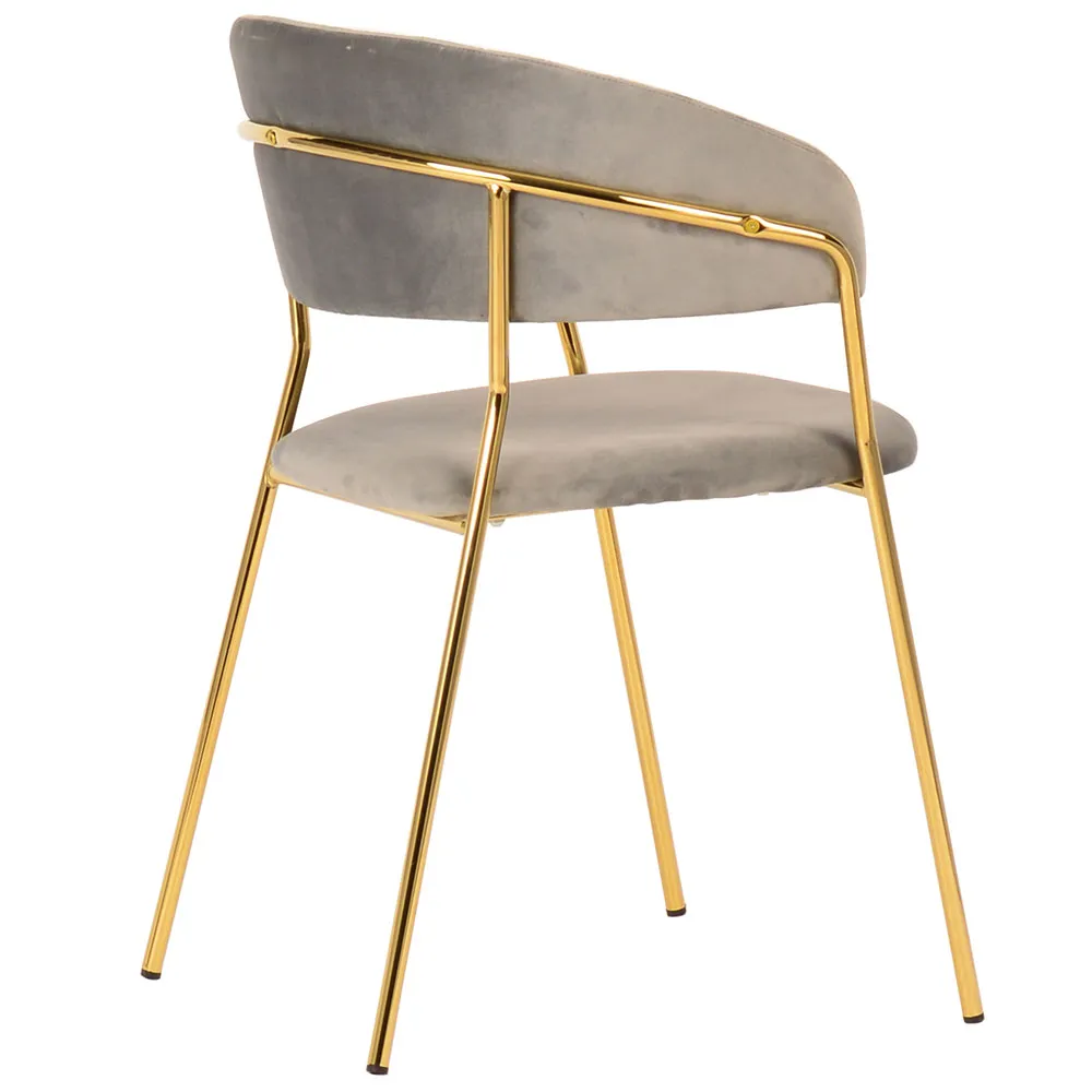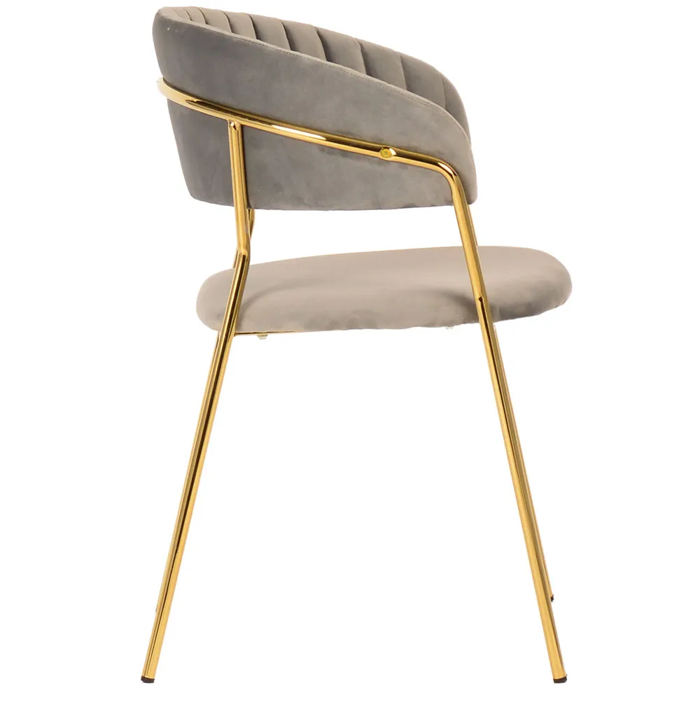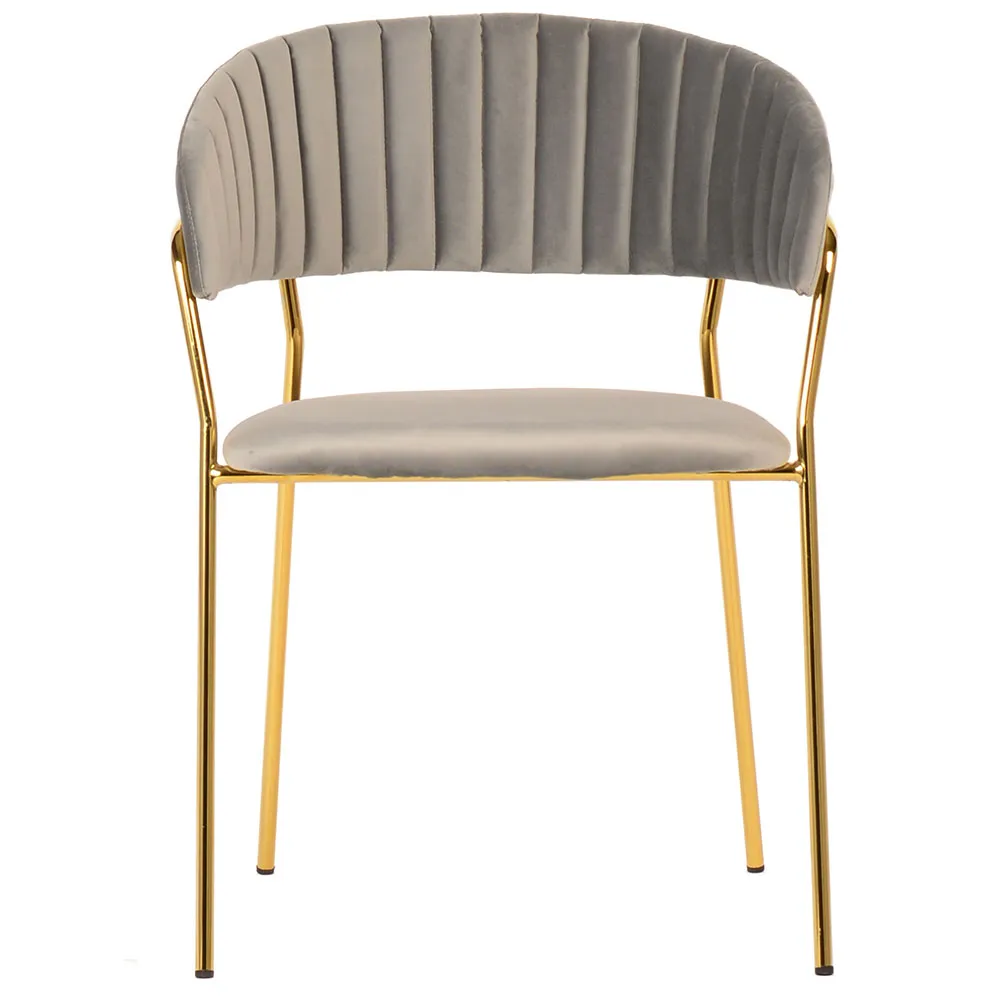 Модель сочетает в себе комфорт и долговечность. Мягкий велюр обивки приятен на ощупь и отличается практичностью. Золотые ножки из прочного металла добавляют предмету мебели легкости и роскоши, визуально расширяя пространство.