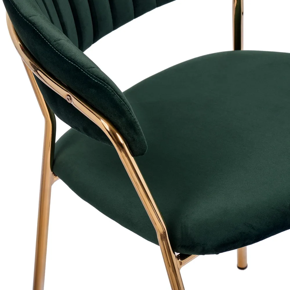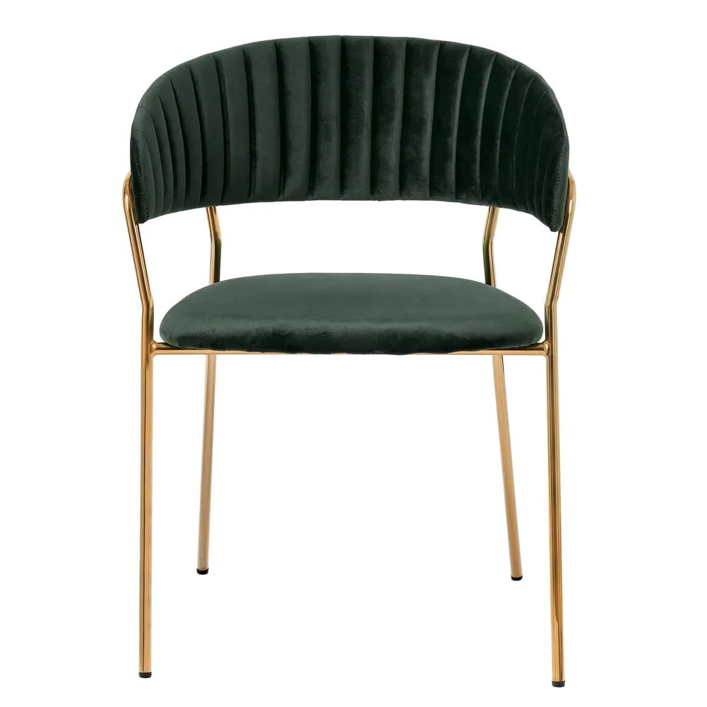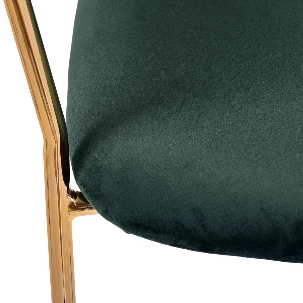 Комплект из двух стульев Turin создает в интерьере атмосферу утонченного комфорта. Модель привлекает внимание глубоким зеленым оттенком велюровой обивки. Этот материал невероятно приятен на ощупь и добавляет облику мебели благородную текстуру.