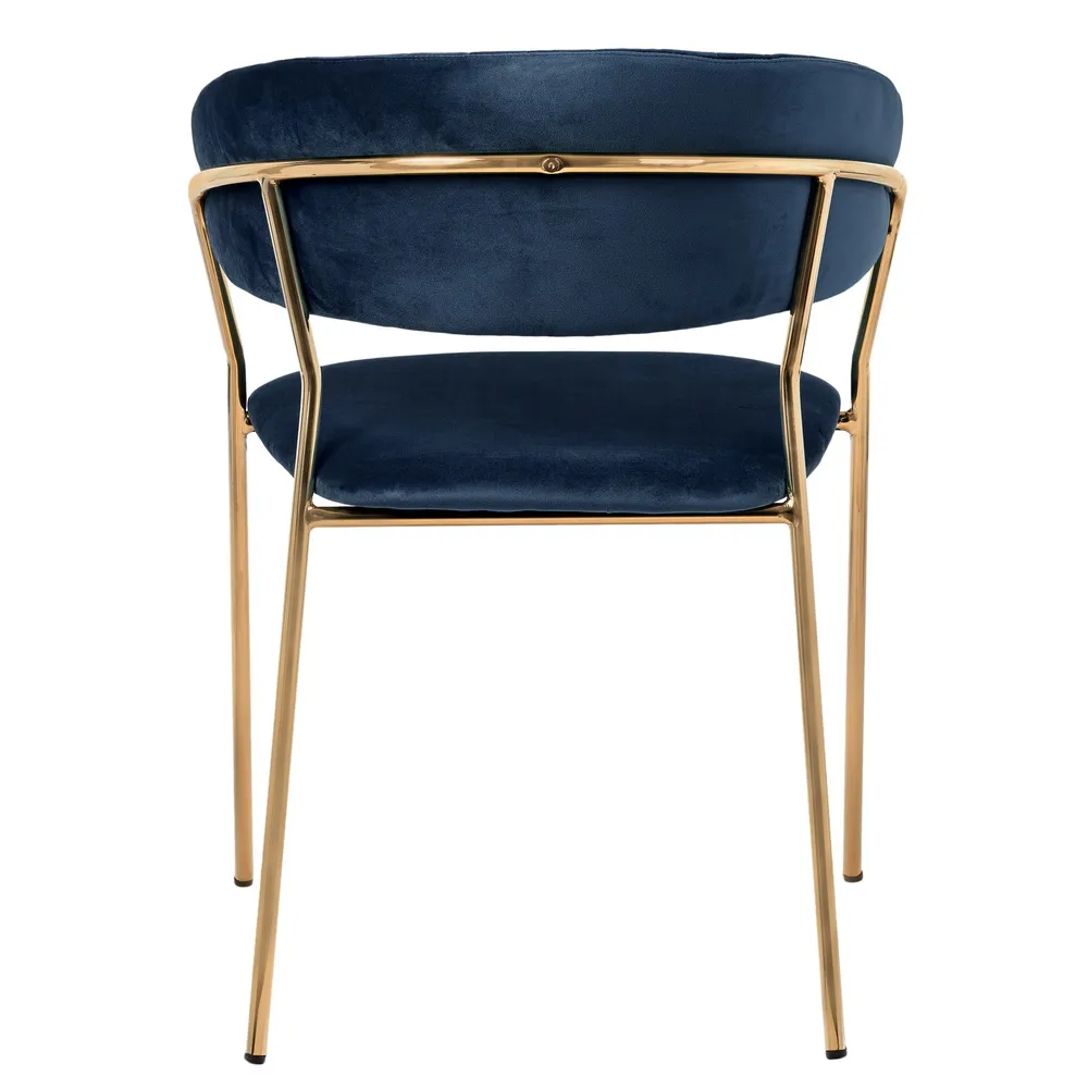 Комплект из четырех стульев Turin создает в интерьере атмосферу утонченной роскоши. Глубокий синий цвет велюровой обивки наполняет пространство благородством и спокойствием. Этот мягкий и приятный на ощупь материал обеспечивает комфорт во время продолжительных трапез или дружеских встреч.