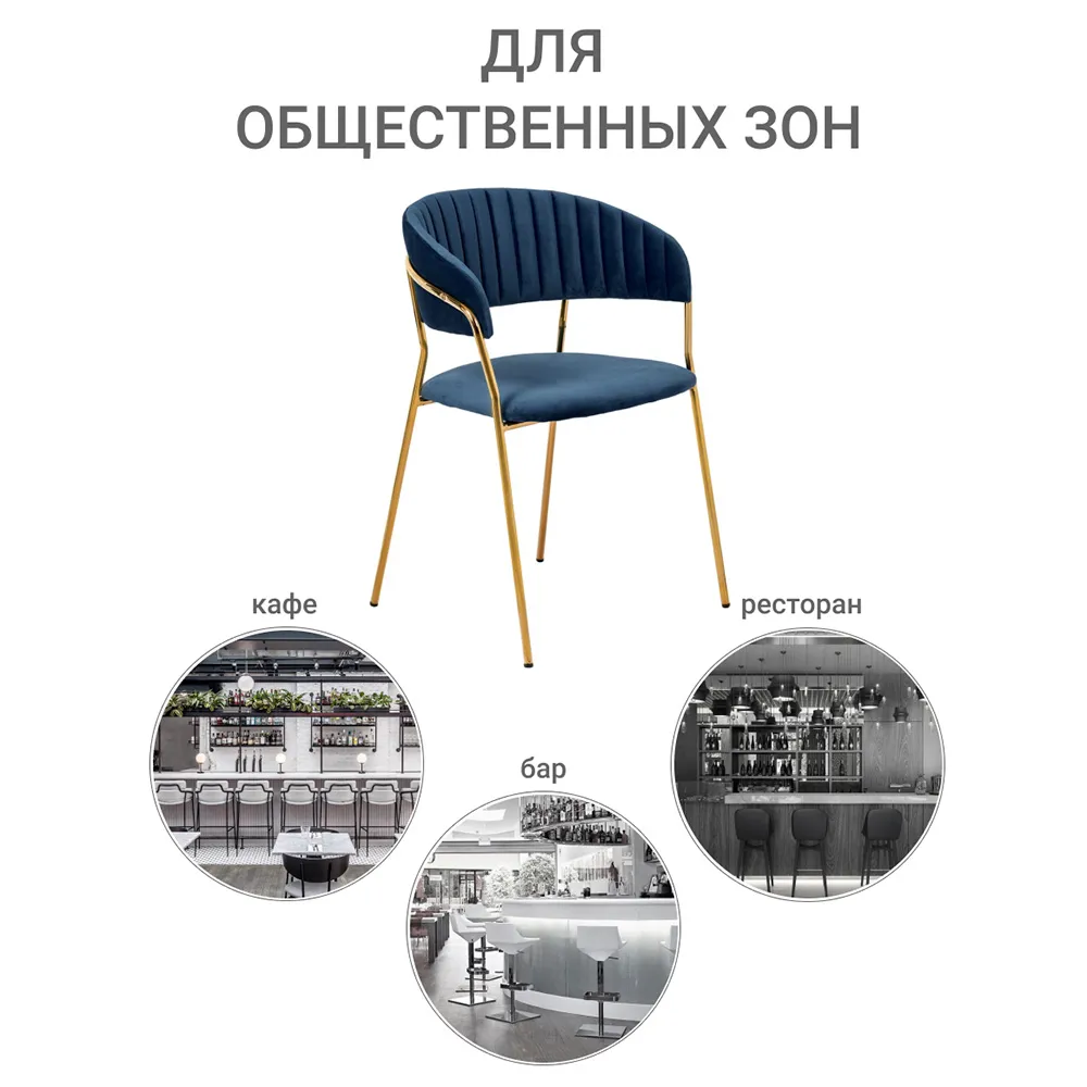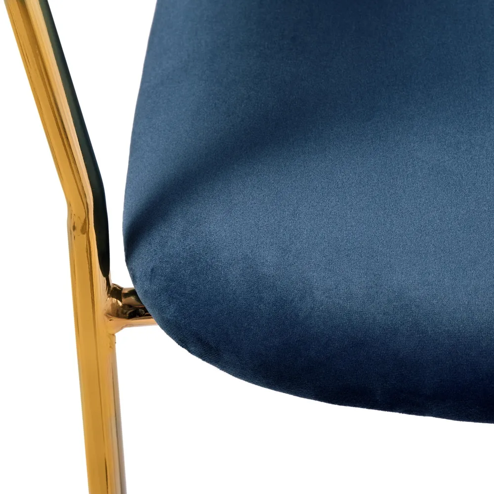Элегантный контраст создают золотые ножки из прочного металла. Они придают дизайну визуальную легкость и невероятную устойчивость. Сочетание синего велюра и золотого металла делает стулья Turin ярким акцентом в столовой зоне или гостиной.