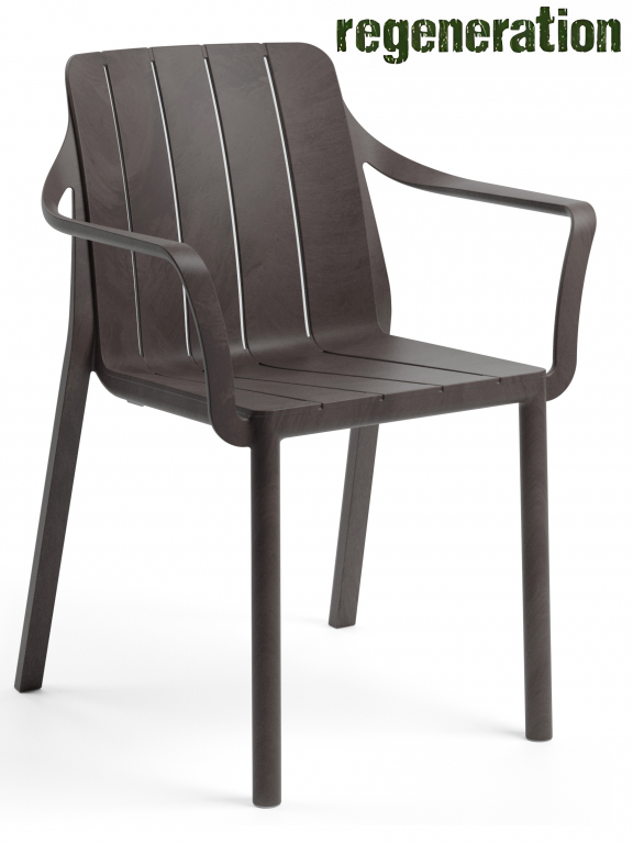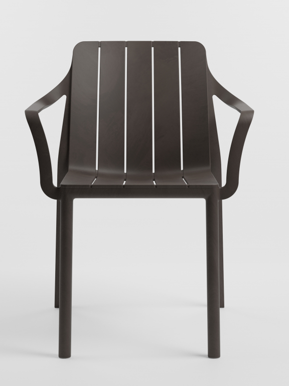 Дизайн:Raffaello Galiotto. Планки, плавные закругленные линии и экологичность - вот отличительные черты нового элегантного креслаTiberina. Модель может быть выполнена из регенерированного пластика (цвет терра)или из пластика, пригодного для вторичной переработки. СерияTiberina привлекает своей изысканной стилистической простотой, вниманием к деталям, матовой отделкой, а также прочным каркасом и формой, обеспечивающими безупречную устойчивость. Матовый коричневый, цвет Terra - название, которое вызывает связь и уважение к природе регенерированного материала. Изделия из пластика Nardi отличаются эксклюзивной, приятной шероховатой фактурой. Наличие тонких не идеально однородных прожилокделает каждый предмет мебели уникальным и неповторимым, непохожим на все остальные. На выходе получается продукт с отличными физико-техническими характеристиками и чрезвычайно чистая и текстурированная эстетическая привлекательность, как у земли («терра»). Мебель создается с использованием 30% переработанного стеклопластика и 70% нового материала. Тщательно продуманный процесс производства исключает влияние вторичного сырья на качество продукции. Таким образом, Nardi не только предлагает долговечные и надежные изделия, но и вносят вклад в защиту окружающей среды, давая пластику вторую жизнь. Это шаг к устойчивому будущему, где экология и качество идут рука об руку. Особенности: Кресло из регенерированного стеклопластика, рожденного в рамках проектаRegeneration и полученного путем переработки полипропиленовой мебели. Выдерживает негативное воздействие окружающей среды (осадки, ультрафиолет). Изделие протестированов соответствии со стандартами. Матовая структура и цвет. Нескользящие накладки на ножках. Легко штабелируется. Открыть технические характеристики. Для уточнения всех возможных вариантов материала и цвета данного изделия обращайтесь к нашим менеджерам.Характеристики