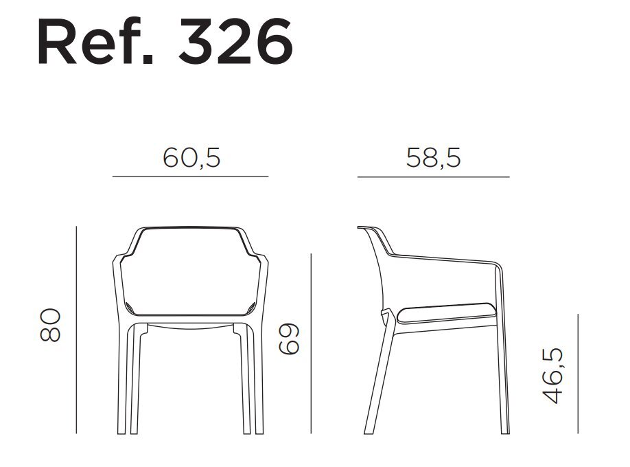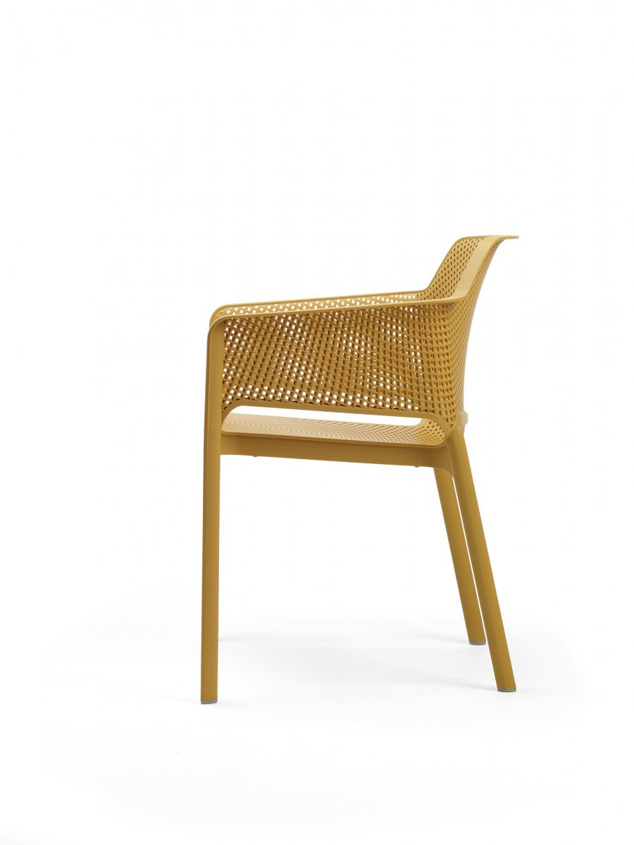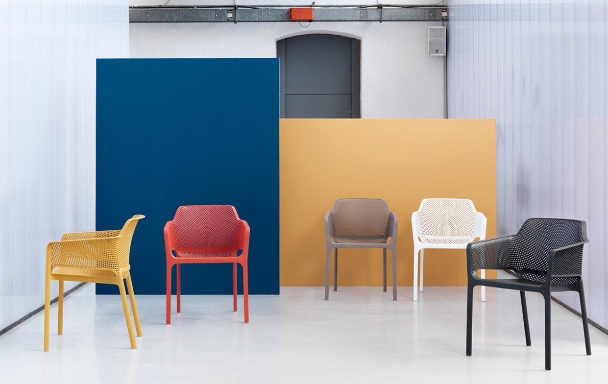 Net - моноблок из стеклопластика (полипропилен и стекловолокно) с перфорированным рисунком, который равномерно распределен по трехмерной поверхности сиденья. Материалы не подвержены воздействию УФ-излучения, благодаря этому кресло долго сохраняет свой первоначальный вид и не выцветает на солнце.