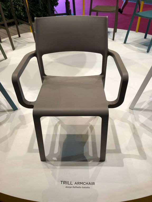 Дизайн:Raffaello Galiotto. На выставке Salone del Mobile 2018 в Милане Nardi представили новую коллекцию уличных пластиковых стульев и кресел Trill. Trill –это яркая и жизнерадостная коллекция, как весенние трели птиц, состоящая из стульев Trill Bistrot, кресел Trill Armchair и барных стульев Trill Stool, выполненных из стекловолокна с гармонично скульптурным внешним видом, выраженным через поразительные, но простые силуэты и актуальный дизайн. Линии дизайна, хранящие в себе память металлических и деревянных конструкций, выраженную, однако, в стеклопластике, где крепления и соединения уступают место непрерывности и текучести, почти без начала и конца. Как всегда, мебель Nardi сочетает в себе долговечность и элегантность как для дома, так и для сферы Contract. Trill Armchair– универсальное и удобное кресло с подлокотниками из стеклопластика с современным дизайном. Легкое, штабелируемое и на 100% пригодное для повторного использования. Особенности: Кресло выполнено из перерабатываемого стеклопластика (полипропилен, усиленный стекловолокном).Легкий, долговечный, нетоксичный и антистатический, водостойкий материал. Материалне подверженвоздействию УФ-излучения, благодаря этому стул долго сохраняет свой первоначальный вид и не выцветает на солнце. Матовая отделка. Нескользящие накладки на ножках. Возможность штабелирования до 6 штук. Продукт протестирован в соответствии с CATAS. Открыть технические характеристики. Для уточнения всех возможных вариантов материала и цвета данного изделия обращайтесь к нашим менеджерам.Характеристики
