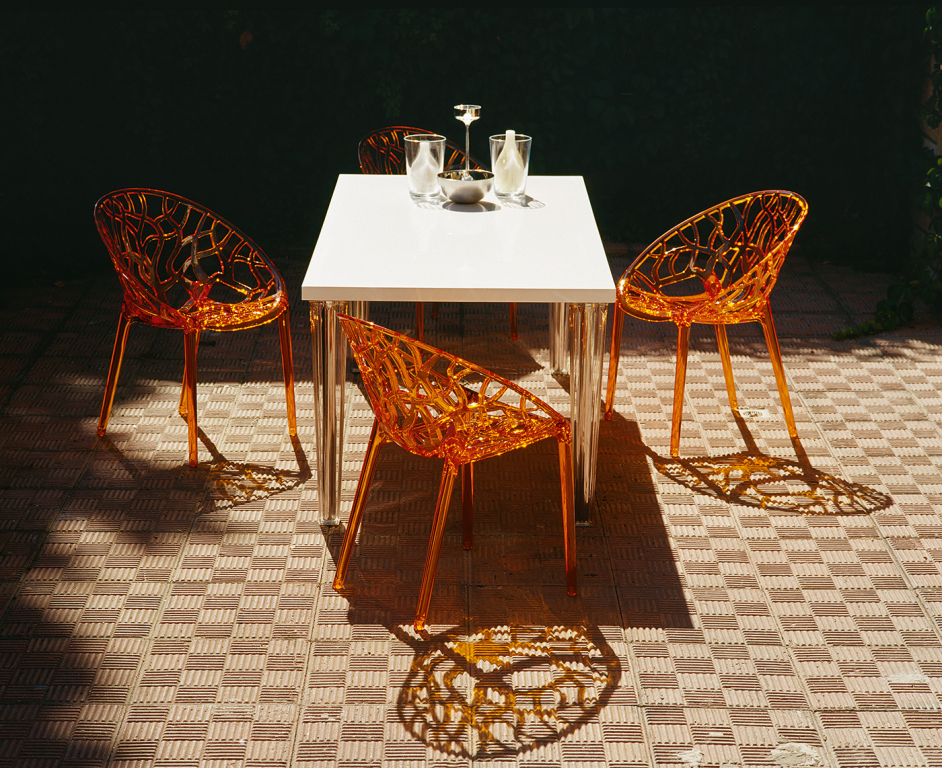 Пластиковое кресло Crystal изготовлено из прозрачного поликарбоната, формованого при помощи газовой технологии второго поколения.Поликарбонат Makrolon® чрезвычайно прочный, легкий материал, обладает стеклянной прозрачностью и устойчивостью к ударам даже при низких температурах.Благодаря использованию высококачественных материалов они долгое время не теряют своего привлекательного внешнего вида, несмотря на активную эксплуатацию. Пластиковые кресла серии Crystal станут отличным выбором для обстановки фуд-кортов, кафе, ресторанов и баров. Благодаря устойчивости к ультрафиолетовому воздействию и отсутствию металлического каркаса кресла из пластика Crystal можно использовать в том числе и на открытых площадках. Особенности: изготовлено из высококачественного поликарбоната; не имеет металлического каркаса - не ржавеет, не поддается коррозии; устойчиво к ультрафиолету и атмосферным осадкам, выдерживает минусовую температуру до 20 градусов; штабелируемое - занимает минимум места при хранении; подходит для использования на открытом воздухе и в помещении; сертификат CATAS. Открыть технические характеристики. Информация по уходу: прозрачные кресла можно протирать тряпкой из микрофибры, допускается применение нейтрального мыльного раствора. Запрещается использовать спиртосодержащие или ацетоносодержащие (а также им подобные) средства.Характеристики