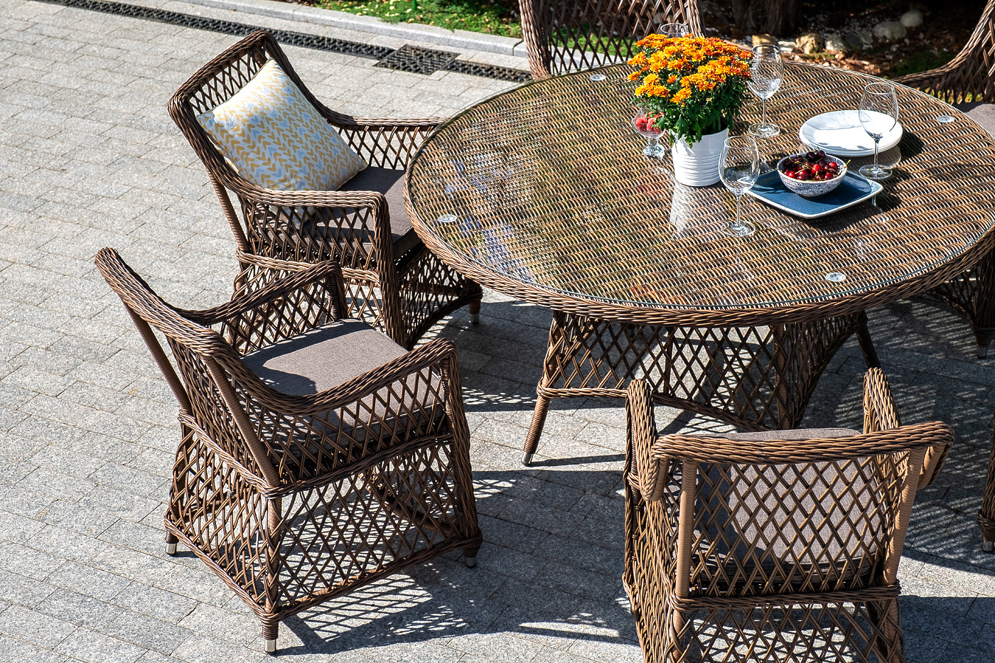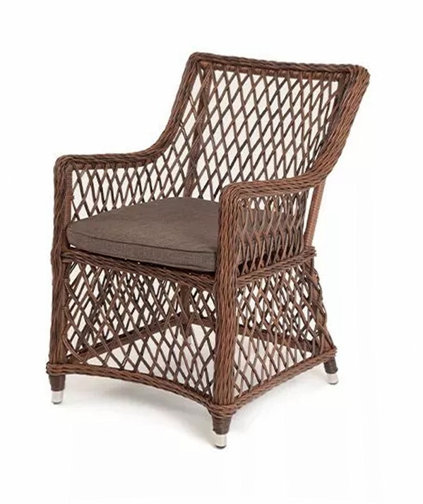 Кресло из искусственного ротанга «Латте» отлично подходит для зоны отдыха на открытом пространстве. Размер 550×660×850 мм. Каркас сделан из прочного алюминия. Сверху конструкции - ручное плетение из круглого искусственного ротанга. Стул коричневого цвета. В комплекте прилагается подушка серого цвета. Ее чехол выполнен из влагостойкого 100%-го полиэстера плотностью 300гр/м2. Этот материал можно стирать, он устойчив к ультрафиолету, осадкам.Бренд | 4SIS |