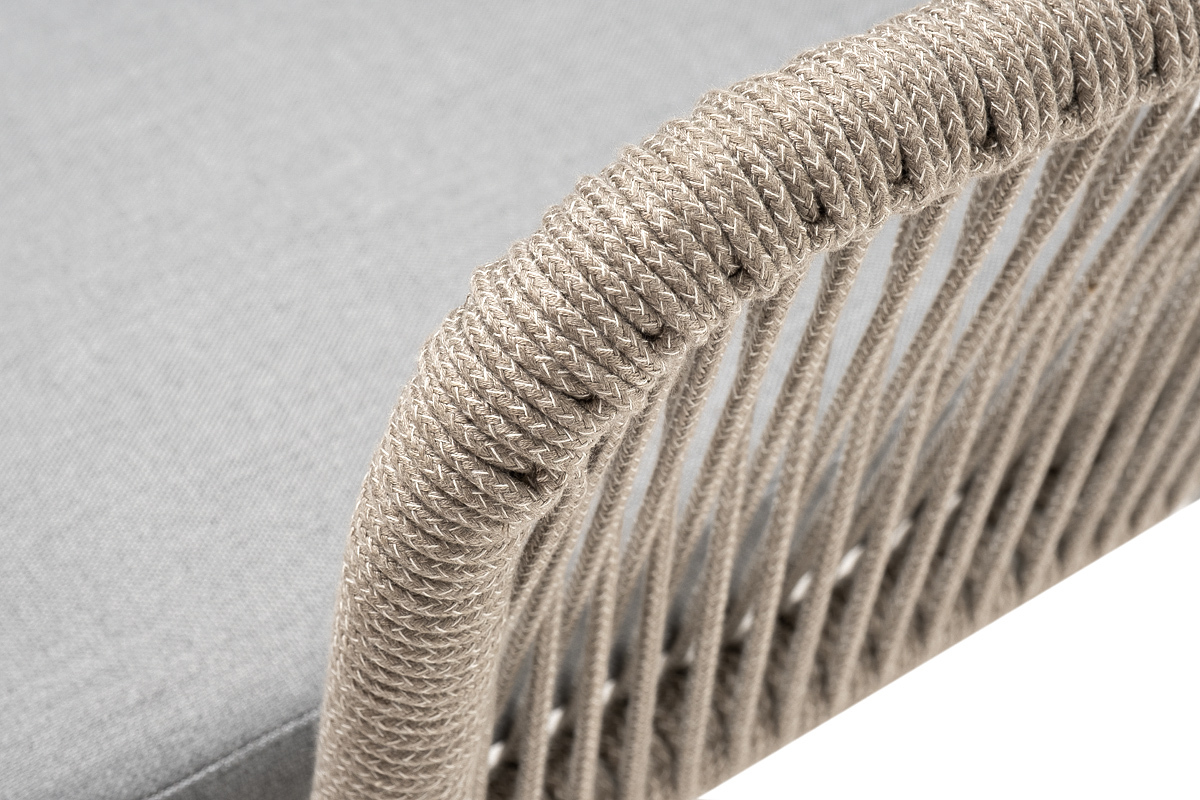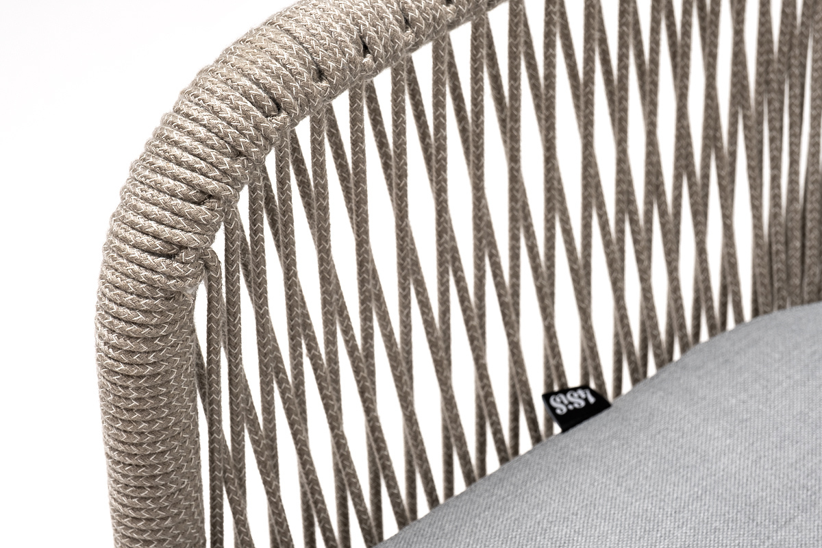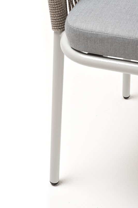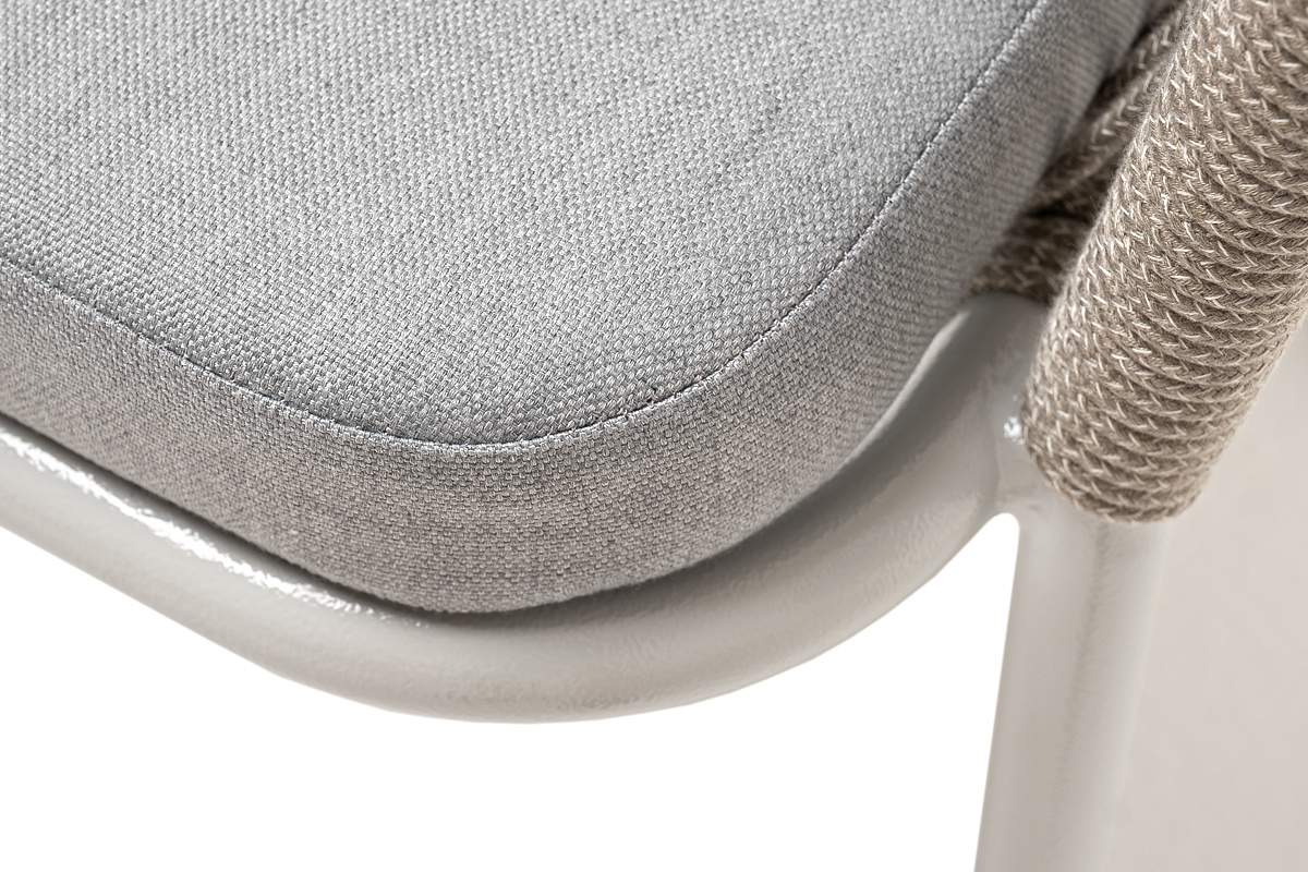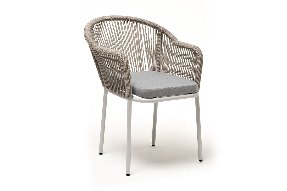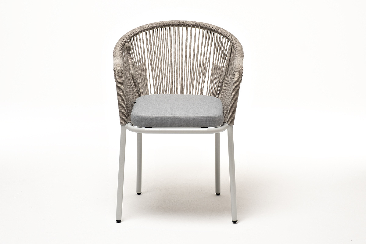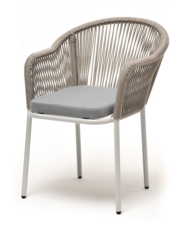 "Лион" стул плетеный из роупа, каркас алюминий светло-серый (RAL7035) муар, роуп серый меланж круглый, ткань светло-серая | |