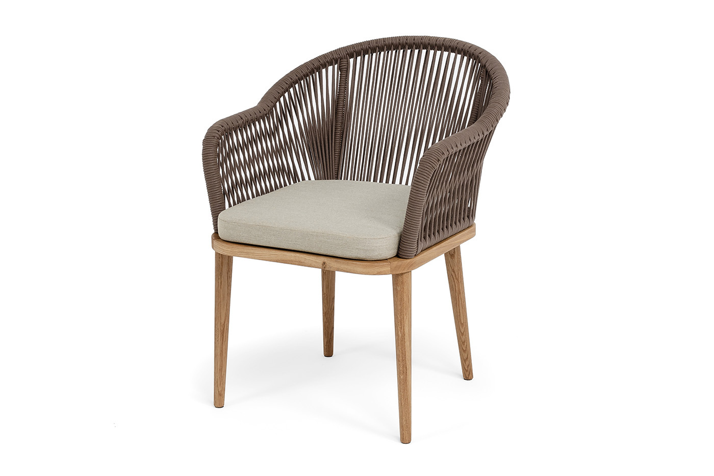 "Лион" стул плетеный из роупа, основание дуб, роуп коричневый круглый, ткань бежевая 15052 | |
