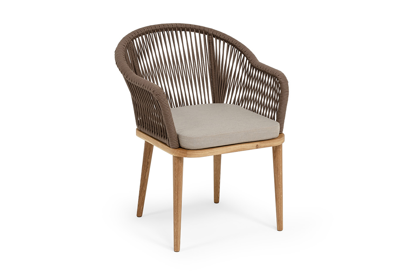 "Лион" стул плетеный из роупа, основание дуб, роуп коричневый круглый, ткань бежевая 15052