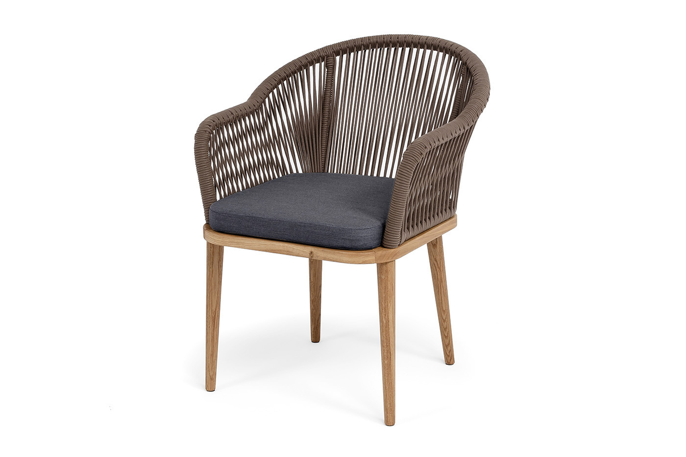 "Лион" стул плетеный из роупа, основание дуб, роуп коричневый круглый, ткань темно-серая 027