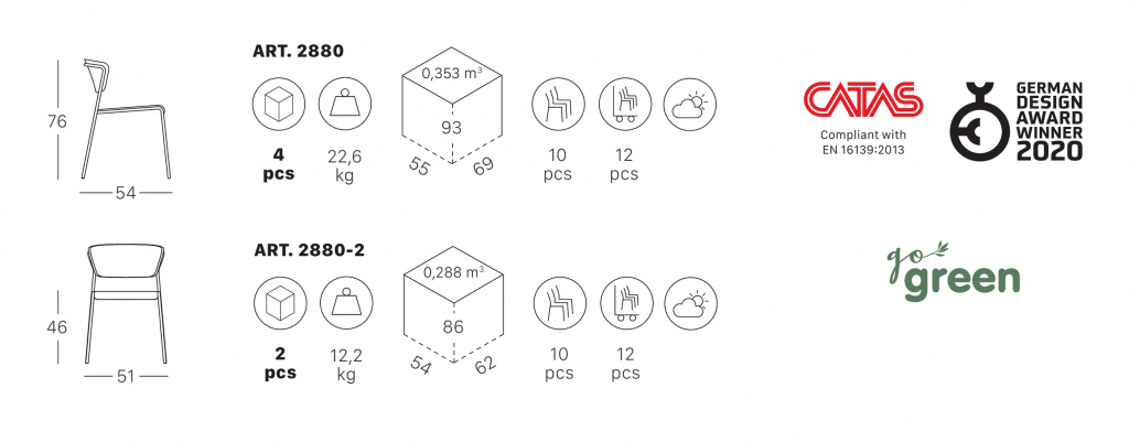 Дизайн:Marcello Ziliani. Scab Design поддерживает экологическую осведомленность и ограничивает количество отходов, производя дополнительные элементы, на 60% состоящие из сертифицированного переработанного пластика, получаемого благодаря использованию энергии, генерируемой из возобновляемых источников, и, в свою очередь, на 100% перерабатываемых бесконечное количество раз в эффективном процессе, направленном на то, чтобы не вводить новый пластик в окружающую среду. Полностью экологически чистые продукты без ущерба для высоких технических стандартов. Scab Design проектирует будущее и окрашивает его в зеленый цвет, защищая планету. Коллекция Lisa Technopolymer является одной из первых, которыепереступают порог зеленого мира: изделия из переработанного пластика в модных цветах.И все это без ущерба для технических стандартов прочности, долговечности и стабильности. Особенности: Каркас выполнен из стальных трубØ16 мм. Возможность штабелирования до 10 шт. Варианты отделки каркаса и корпуса:тортора (VT15), оливковый (VD56), антрацит (VA81). Посмотреть технические характеристики. Обращаем ваше внимание, что каждый цвет каркаса сочетается только с определенными цветами корпуса. При выборе цветовой комбинацииориентируйтесь на таблицу с палитрой, где указаны доступные варианты сочетаний.Характеристики