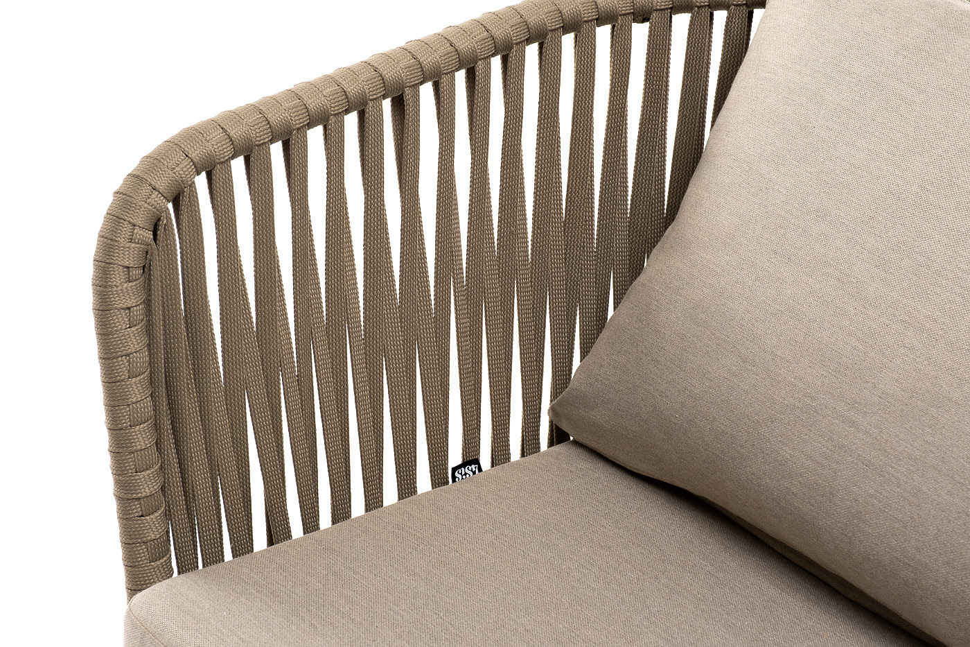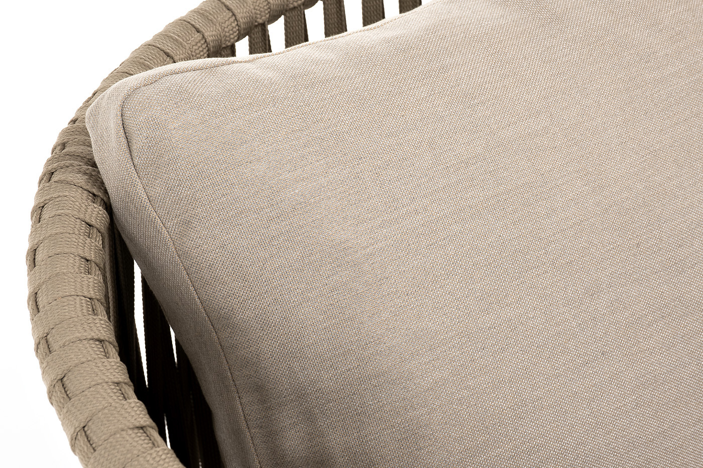 "Мальорка" кресло плетеное из роупа, основание дуб, роуп серо-коричневый 23мм, ткань бежевая 052 | |