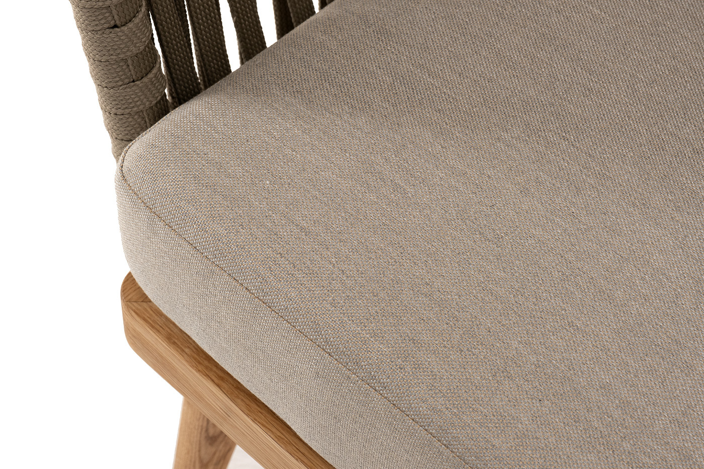 "Мальорка" кресло плетеное из роупа, основание дуб, роуп серо-коричневый 23мм, ткань бежевая 052