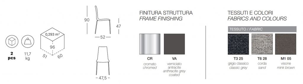 Стул с обивкой Scab Design Mannequin Pop 4 legs, хром, серый