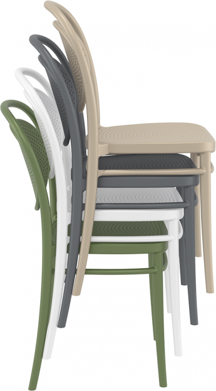 Стул Marcel изготавливается из полипропилена, упрочненного стекловолокном, полученным с использованием новейшего поколения технологий формования пластмасс под давлением. Пластиковые стулья серии Marcel станут отличным выбором для обстановки фуд-кортов, кафе и ресторанов. Благодаря использованию высококачественных материалов они долгое время не теряют своего привлекательного внешнего вида, даже несмотря на активную эксплуатацию. Отсутствие металлического каркаса и устойчивость к ультрафиолетовому воздействию обеспечивают использование пластиковых стульев Marcel в том числе и на открытых площадках. Особенности: перфорированное сиденье и спинка; стул изготовлен из высококачественного полипропилена, армированного стекловолокном; не имеет металлического каркаса, не ржавеет, не поддается коррозии; устойчив к ультрафиолету и атмосферным осадкам, выдерживает минусовую температуру до 20 градусов; штабелируемый - занимает минимум места при хранении; подходит для использования на открытом воздухе и в помещении; сертификат CATAS. Открыть технические характеристики.Характеристики