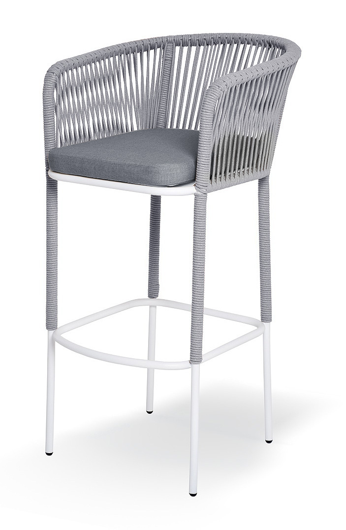 "Марсель" стул барный плетеный из роупа, каркас из стали светло-серый (RAL7035) муар, роуп светло-серый круглый, ткань светло-серая | |