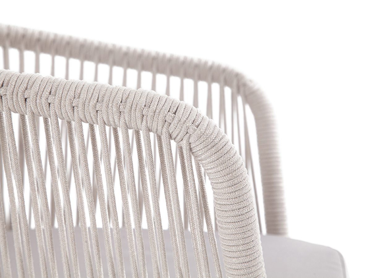 "Марсель" стул плетеный из роупа, каркас алюминий белый муар, роуп бежевый круглый, ткань бежевая 15052 | |