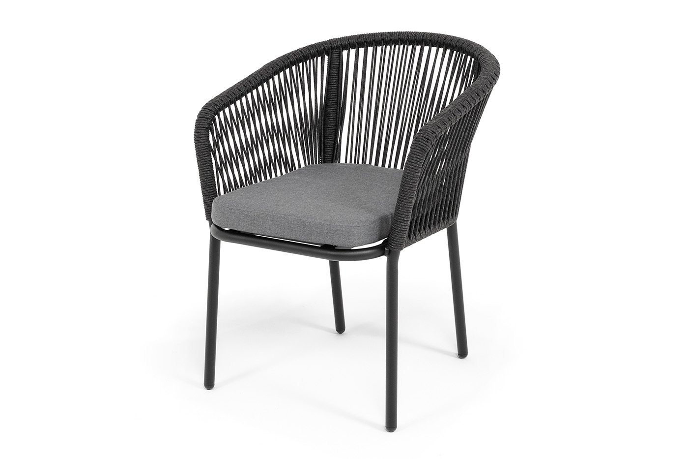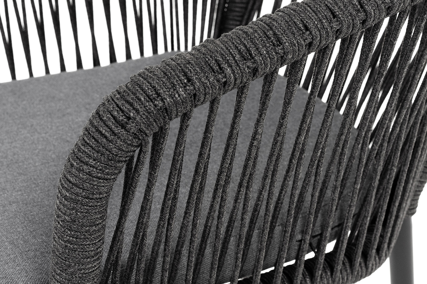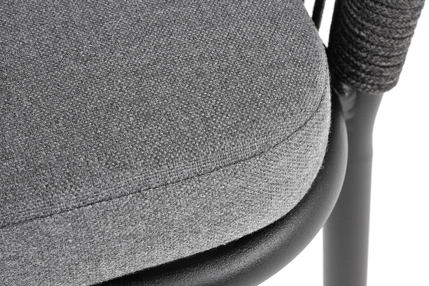 "Марсель" стул плетеный из роупа, каркас алюминий черный муар, роуп темно-серый круглый, ткань темно-серая 027