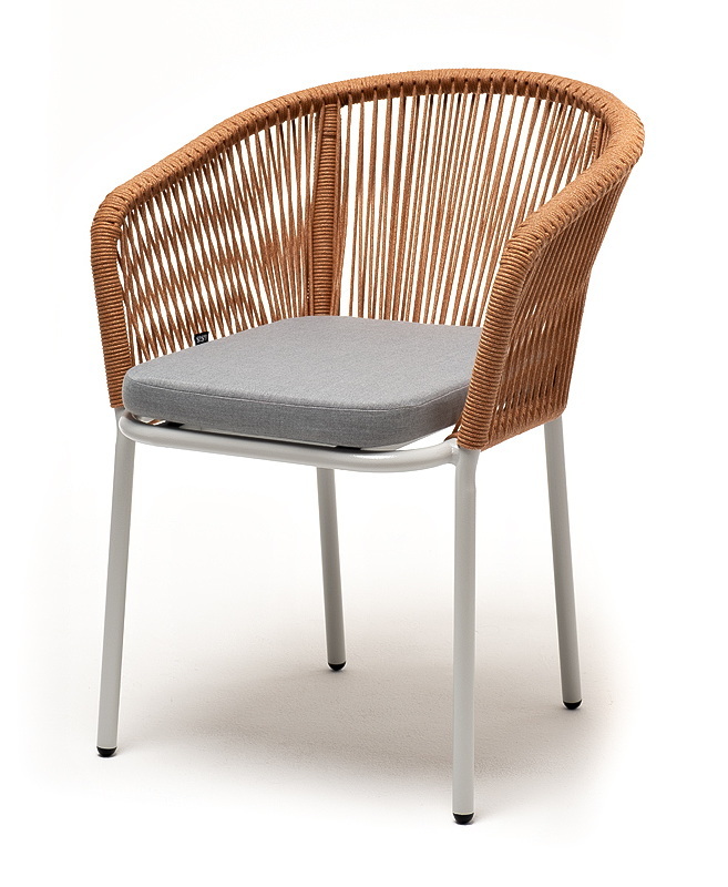 "Марсель" стул плетеный из роупа, каркас алюминий светло-серый (RAL7035) муар, роуп оранжевый меланж круглый, ткань светло-серая | |