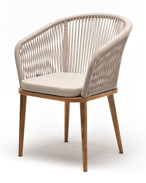 "Марсель" стул плетеный из роупа, основание дуб, роуп бежевый круглый, ткань бежевая 15052 | |