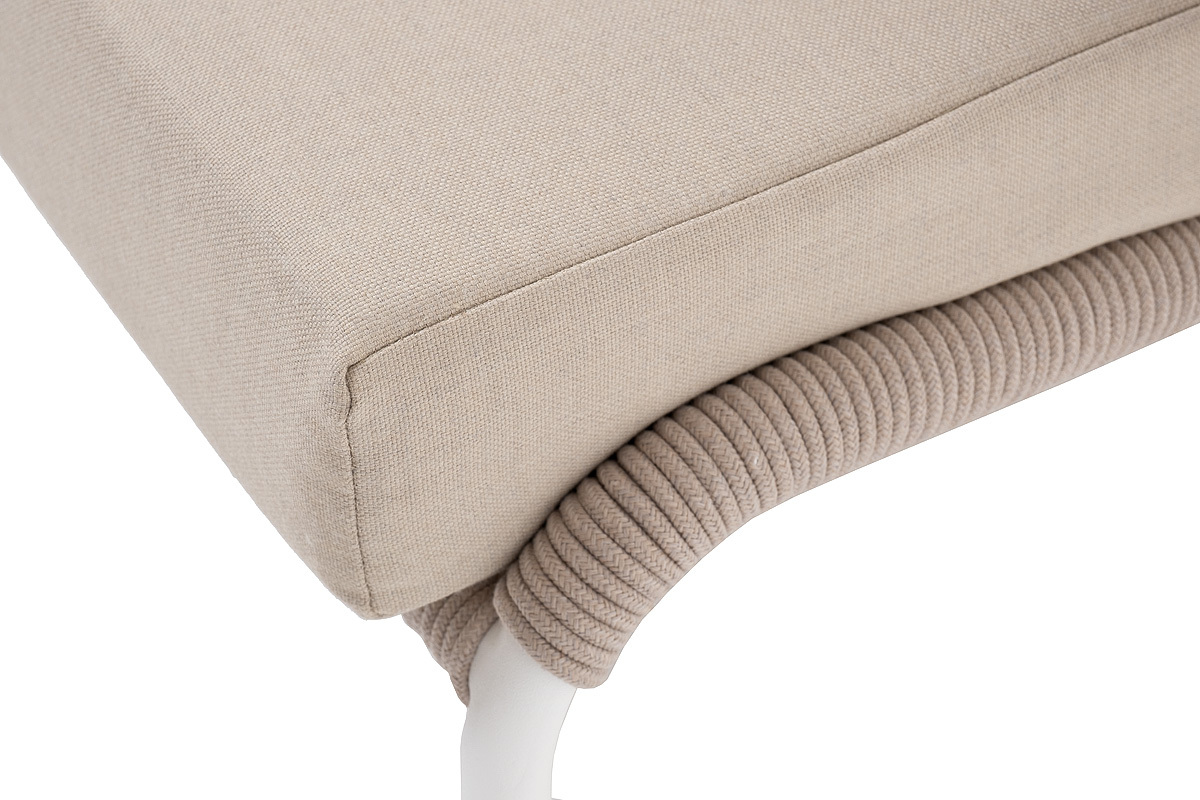 "Милан" кресло плетеное из роупа, каркас алюминий белый муар, роуп бежевый круглый, ткань бежевая 052