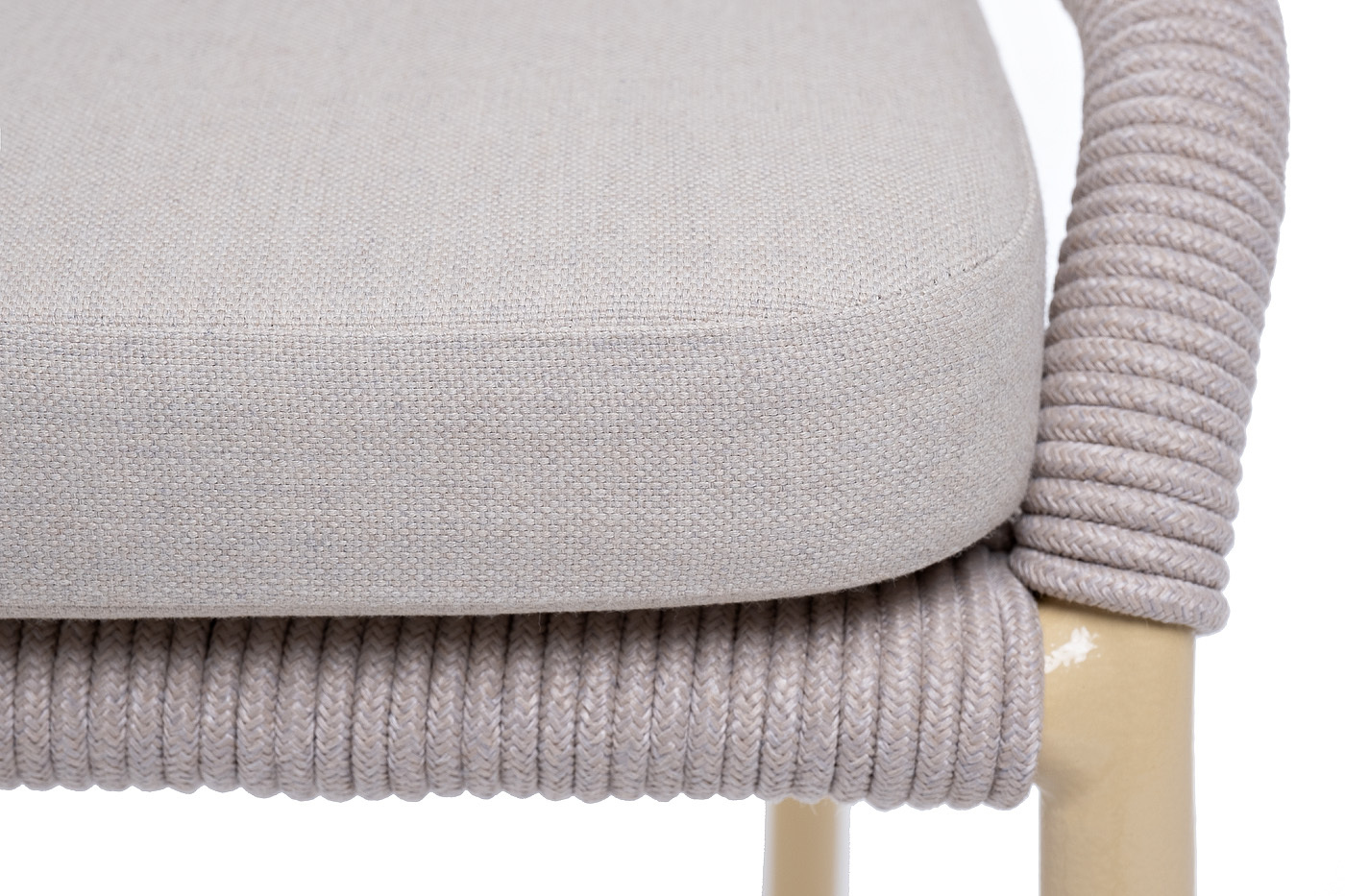 "Милан" стул плетеный из роупа, каркас алюминий (RAL1001), роуп бежевый круглый, ткань бежевая
