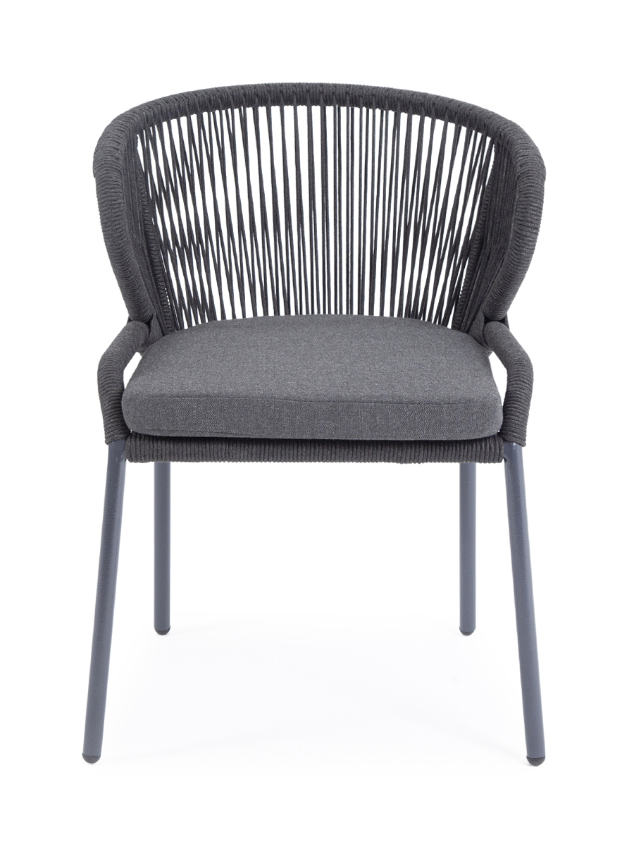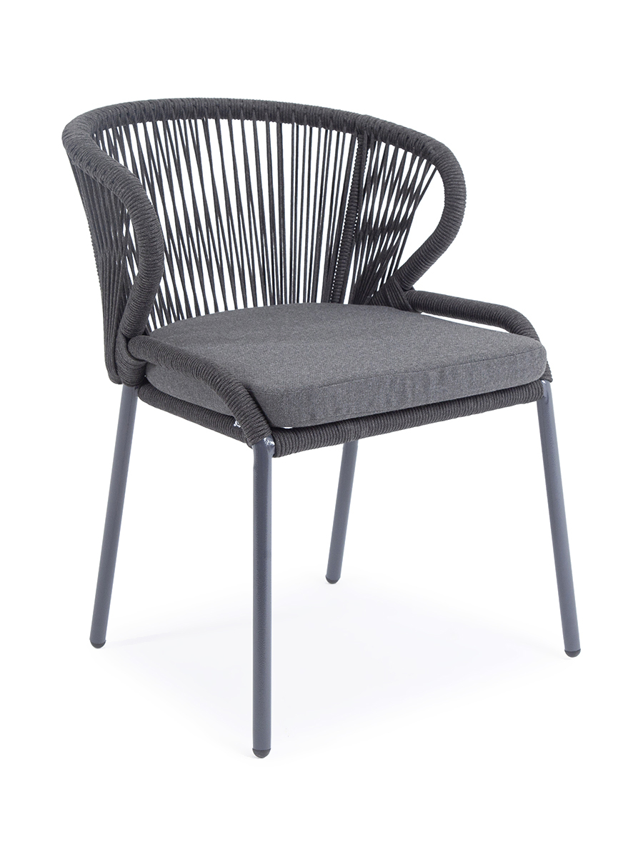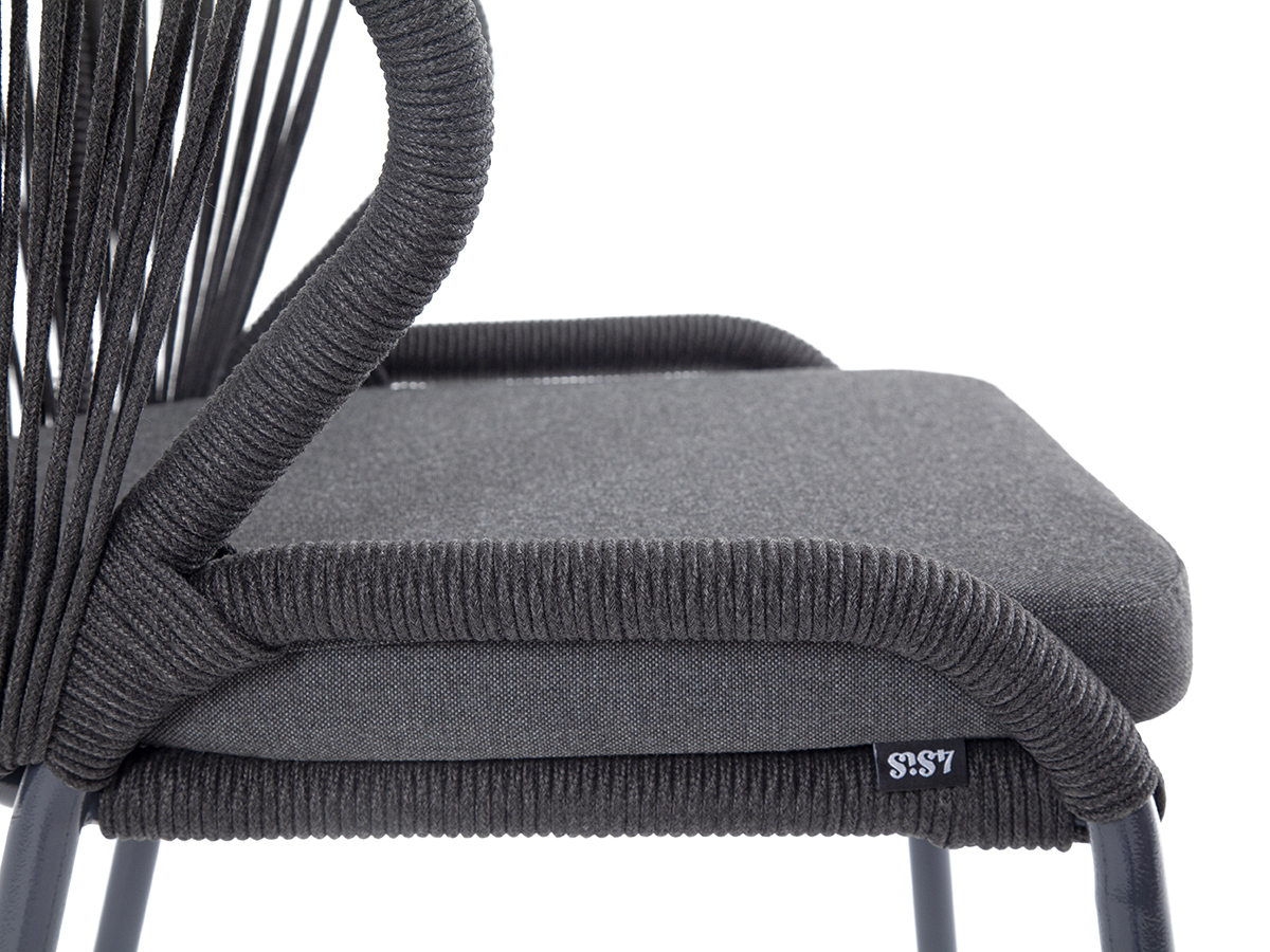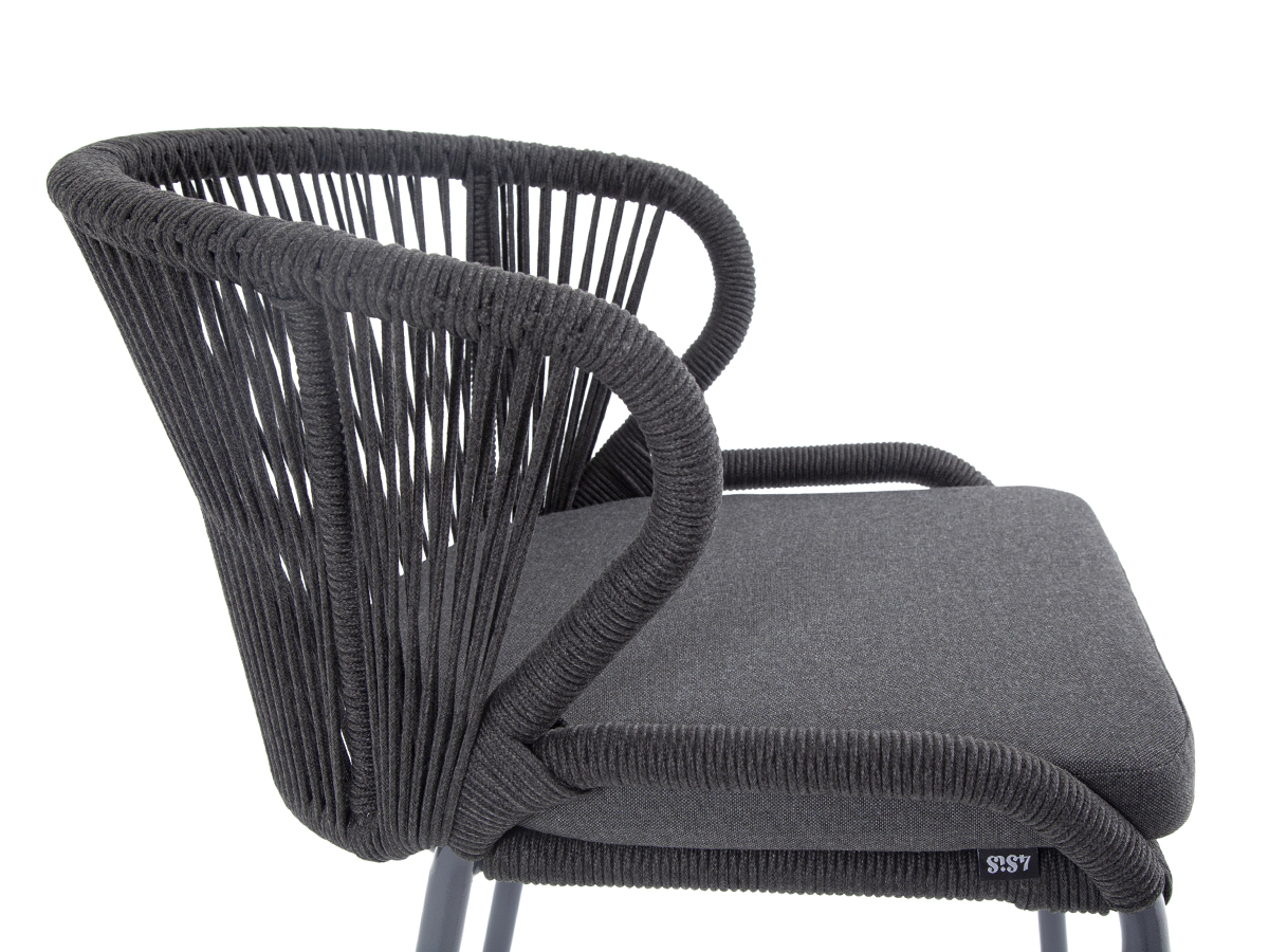 "Милан" стул плетеный из роупа, каркас алюминий темно-серый (RAL7024) муар, роуп темно-серый круглый, ткань темно-серая 027
