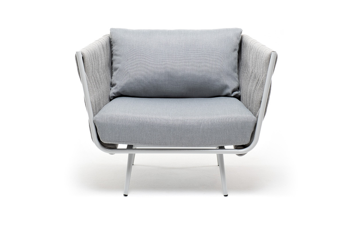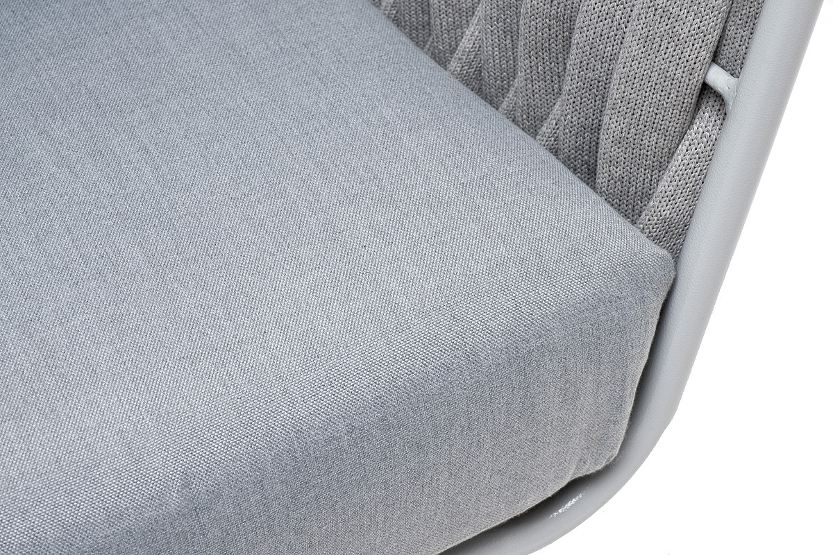 "Монако" кресло плетеное из роупа, каркас алюминий светло-серый (RAL7035) муар, роуп светло-серый 40 мм, ткань светло-серая | |
