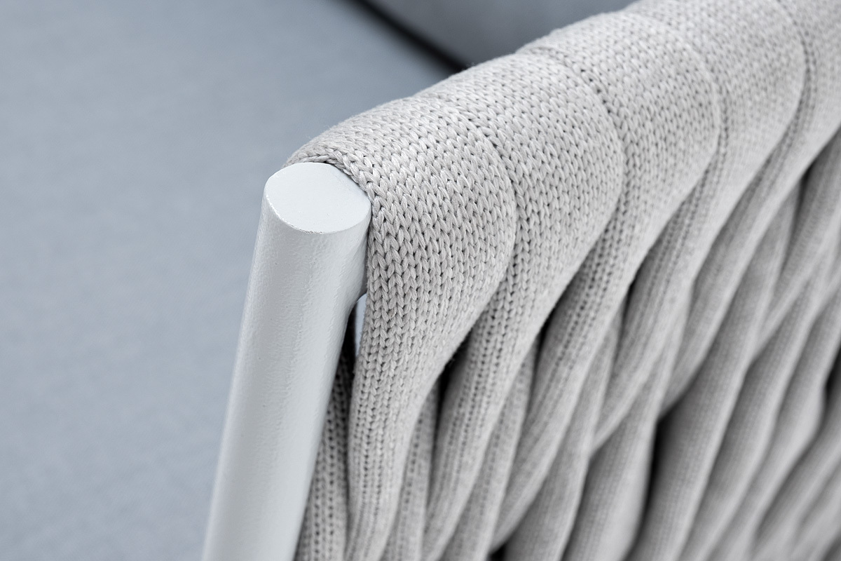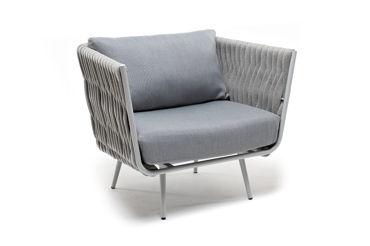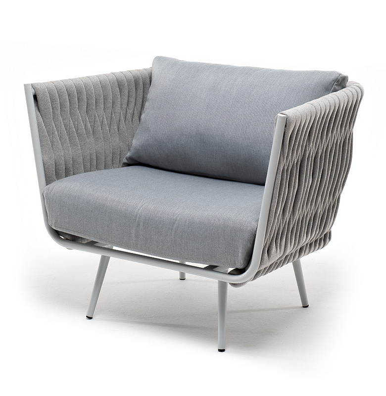 "Монако" кресло плетеное из роупа, каркас алюминий светло-серый (RAL7035) муар, роуп светло-серый 40 мм, ткань светло-серая