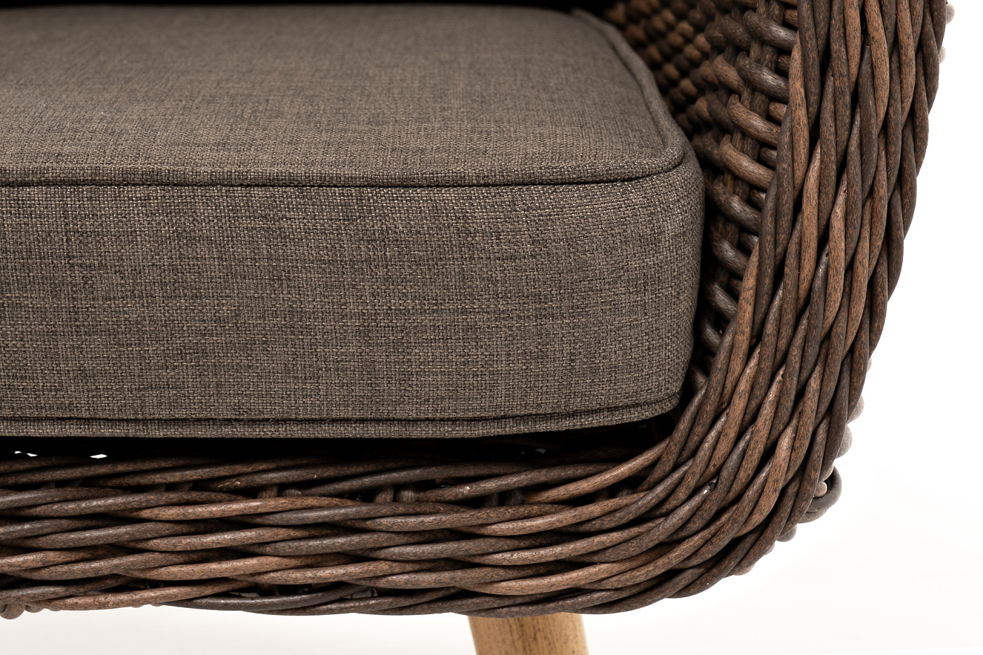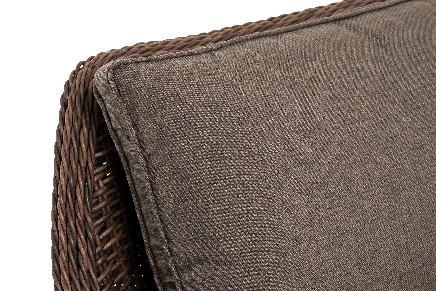 Кресло «Прованс» входит в комплект лаунж-зоны с плетеным диваном и журнальным столиком аналогичной серии. Так же его можно использовать, как самостоятельный элемент мебели. Надежность и износостойкость мебели гарантирует каркас, который сделан из качественного алюминия. Ее дополняет ручное плетение, при изготовлении которого используется искусственный ротанг. Представлена модель в коричневом цвете. В комплекте с уличным ротанговым креслом идут мягкие подушки со съёмными чехлами серого оттенка. Они пошиты из полиэстера, который не боится повышенной влажности благодаря наличию влагоотталкивающей пропитки. Плотность ткани составляет 300гр/м2. Размер кресла – 810×800×770 мм. *Требуется сборка! *В одну коробку размером 900×650×800 мм аккуратно упакованы два кресла. Общий вес коробки с двумя креслами составляет 22 кг.Бренд | 4SIS |