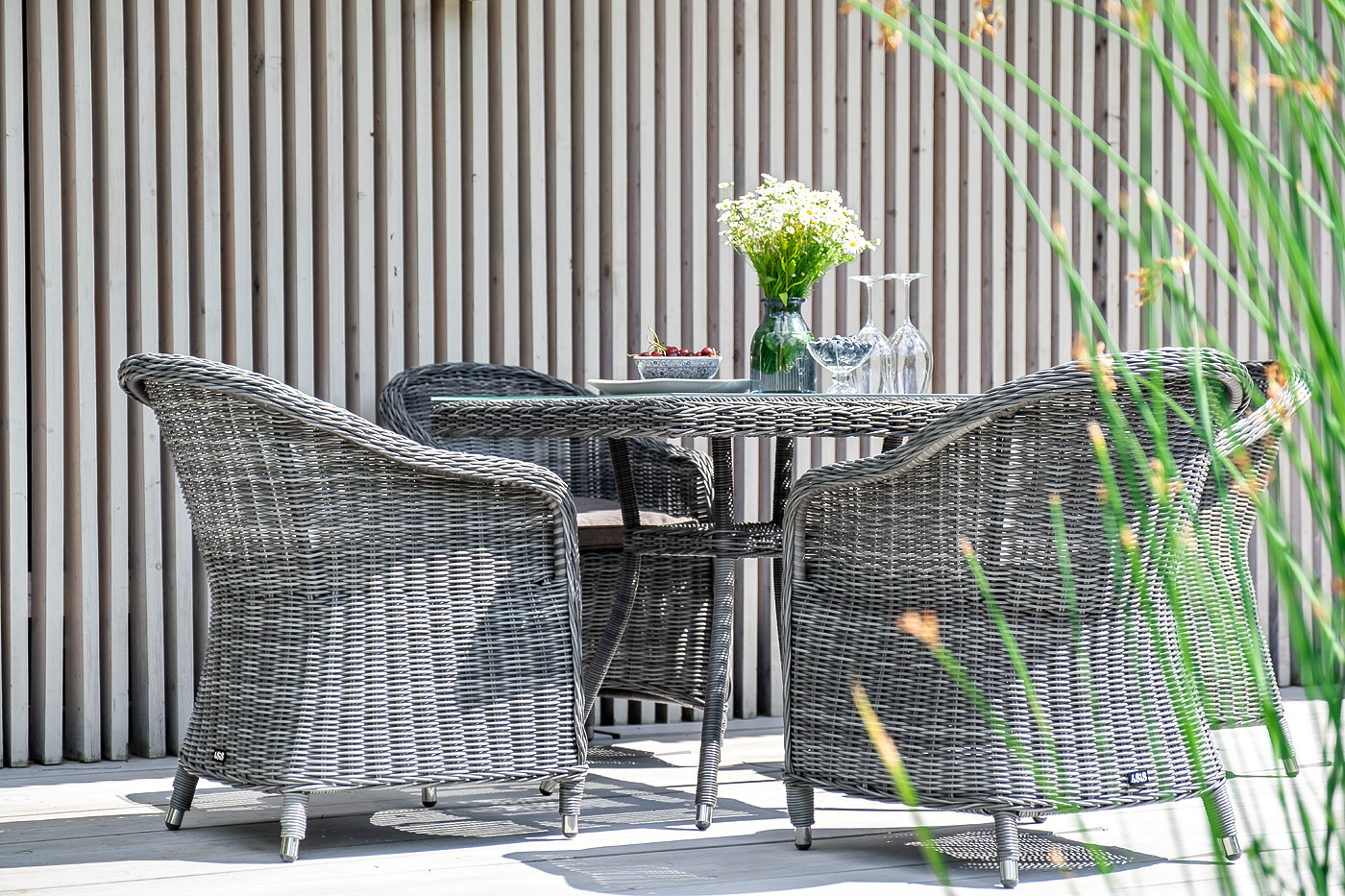 Кресло из искусственного ротанга «Равенна» обладает крепким алюминиевым каркасом, который вручную обвит круглым ротангом графитового оттенка. Сиденье располагает комплектной подушкой из 100% полиэстера, пропитанного специальным влагоотталкивающим составом. Габариты: 570×680×810 мм.Бренд | 4SIS |