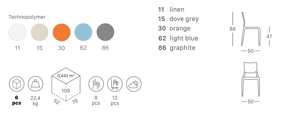 Пластиковый стул Sirio от дизайнеров Arter & Cittonвыполнен из технополимера, армированного стекловолокном. Благодаря минималистичному и современному дизайну Sirio адаптируется к любому использованию. На стуле удобно сидеть, его легко складывать в стек, что делает Sirio пригодным для широкомасштабного использования в сфере Contract.Специальная форма ножек, выполненных в виде цельного блока, обеспечивает идеальную укладку в стек без зазоров,равномерноевыравниваниедеталей, исключительную устойчивость и минимально возможное пространстводля хранения. Особенности: Корпус выполнениз технополимера, отлитого с помощью технологии воздушного формования и армированного стекловолокном. Возможность штабелирования до 8шт. для максимального удобства хранения. Данная модель предназначенадля использования на летних площадках, террасах, фудкортах, а также во внутреннем интерьере кафе, ресторанов. Открыть технические характеристики.Характеристики