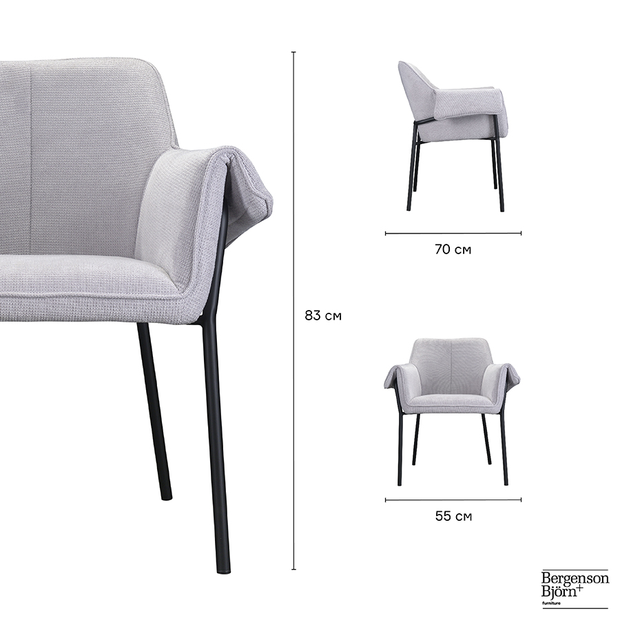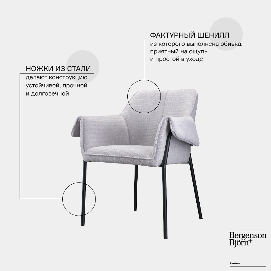 Стул Bergenson Bjorn Aline, шенилл, светло-серый