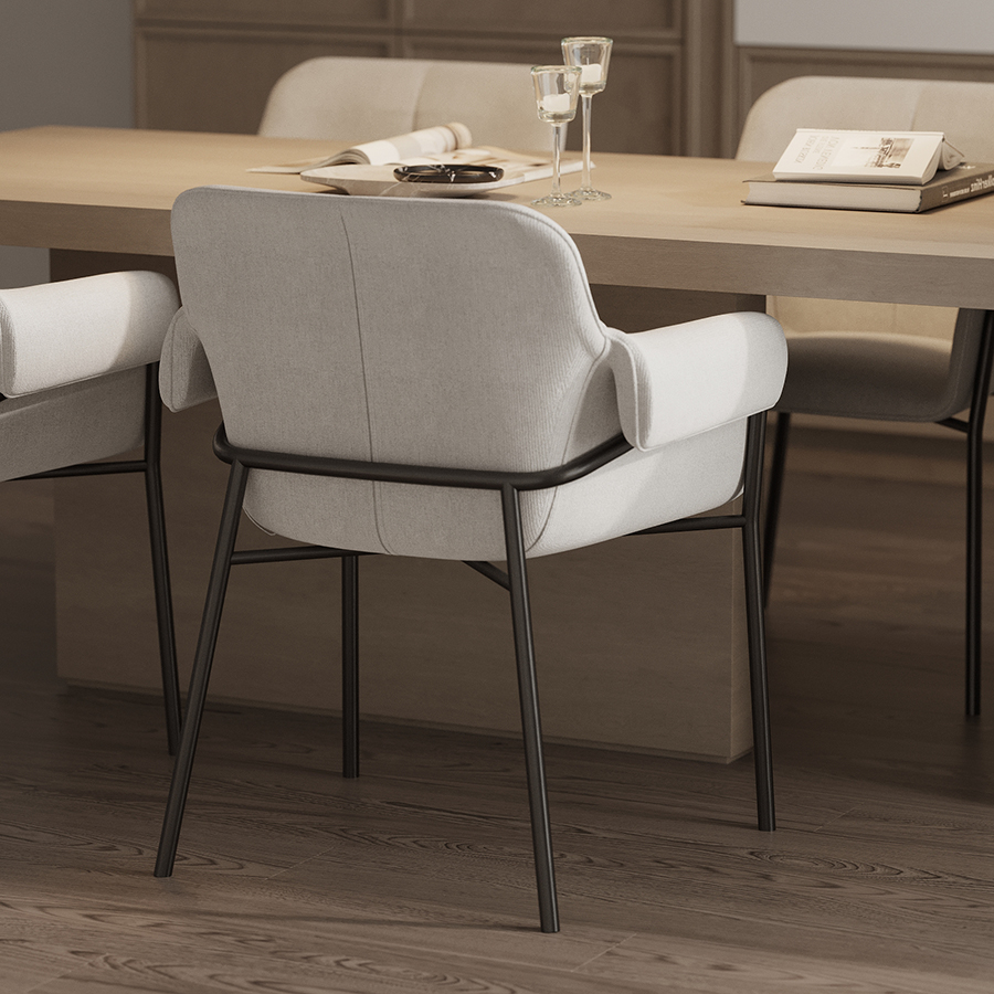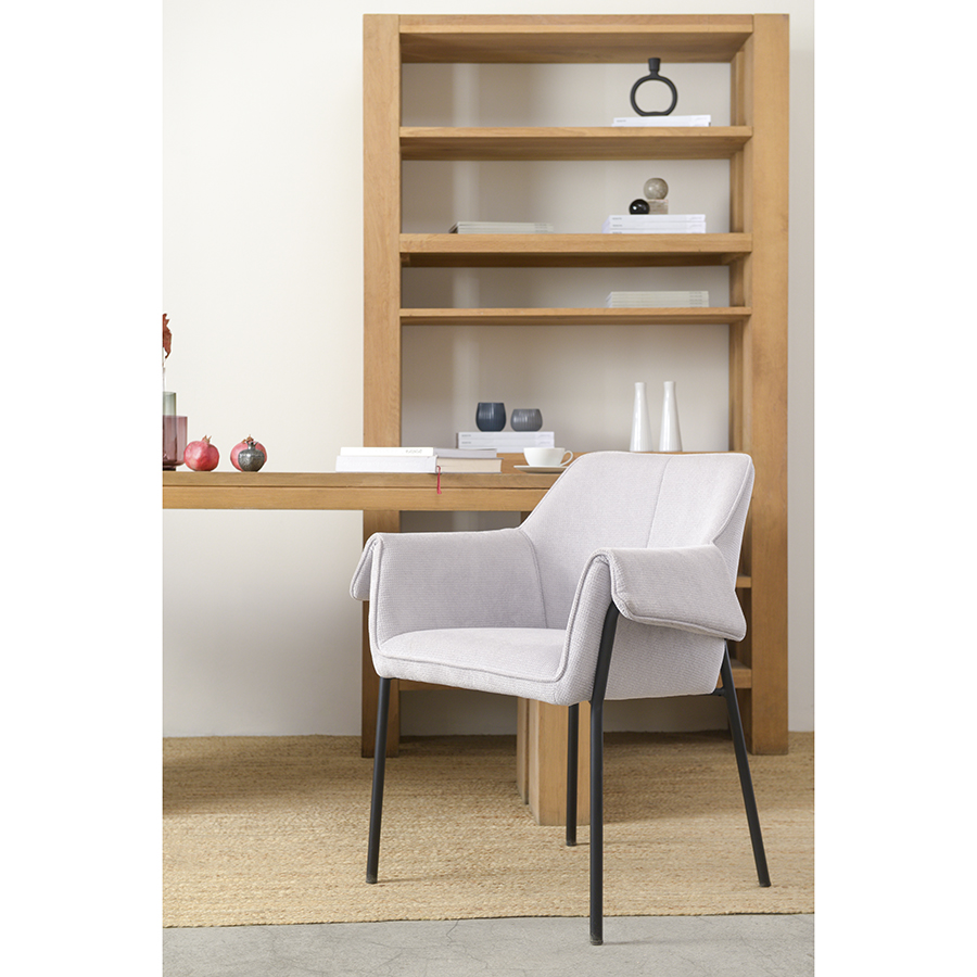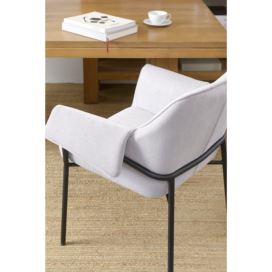 Стул Aline с обивкой из фактурного шенилла выглядит уютно и в то же время благородно. Материал приятный на ощупь и простой в уходе. Комфорт во время отдыха на стуле достигается за счет удобного сиденья с наполнителем из пенополиуретана, высокой наклонной спинки, глубокой посадки и мягких подлокотников. Светлая мебель с лаконичным силуэтом идеально вписывается в интерьер гостиной, рабочего кабинета или спальни, оформленных в скандинавском стиле, лофт, эклектика, фьюжн, неоклассика и др.Материалы: 93%, полиэстер, 7%, нейлон, фанера, железо, пенополиуретан. Размеры: 70x55x83 см. Максимальная нагрузка: 120 кг. Истираемость ткани по шкале Мартиндейла ?40000.