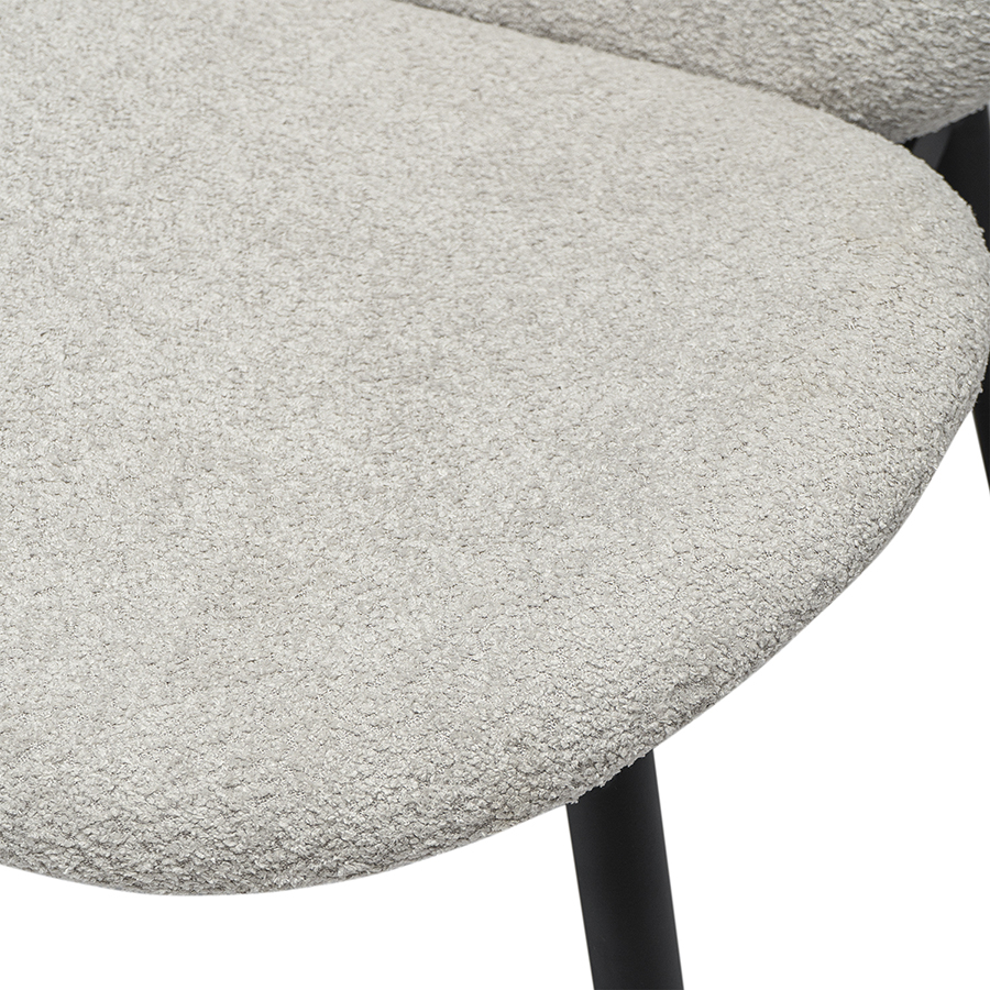 Мебель с буклированной обивкой делает пространство более уютным и привносит в дизайн интерьера французский шарм. Стул Bente – прекрасный вариант для всех, кто любит быть в тренде и внимательно относится к деталям.Стул имеет удобную посадку за счет глубокого сиденья эргономичной формы и высокой спинки. Ножки мебели изготовлены из железа с устойчивым к коррозии и повреждениям порошковым покрытием. Состоящая из мелких узелков ткань обивки с приятной фактурой дарит тактильный комфорт и визуально смягчает любую интерьерную композицию. Материал не требует сложного ухода и долго сохраняет привлекательный вид.