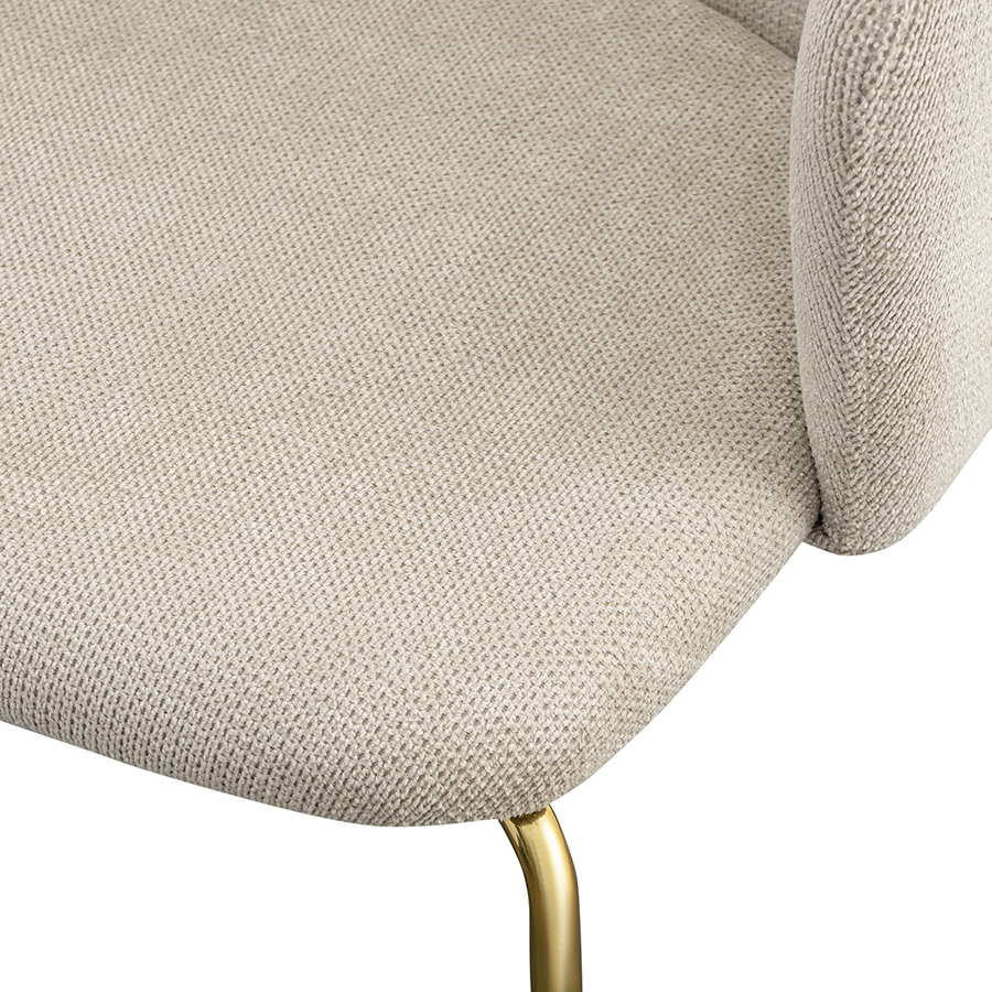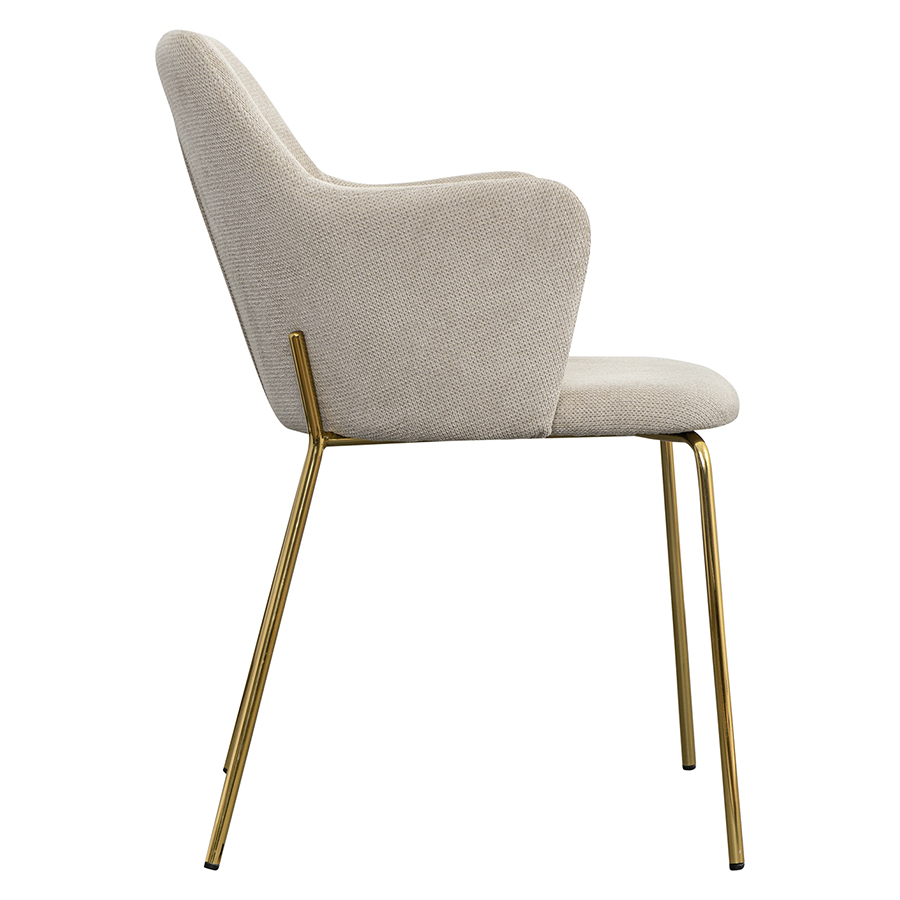 Стул Dwight приятного светло-бежевого оттенка великолепно дополнит обеденную зону на кухне или в столовой, украсит пространство гостиной, спальни и рабочего кабинета. За счет минималистичного дизайна модель актуальна для большинства интерьерных стилей.Конструкция надежна, прочна и долговечна. Комфорт при сидении достигается за счет глубокой посадки и широкой спинки, плавно переходящей в подлокотники. Ножки из стали расположены под определенным углом для хорошей устойчивости. Обивка из шенилла с ярко выраженной фактурой обеспечивает мебели привлекательный вид. Материал мягкий, приятный на ощупь и обладает отличными износостойкими характеристиками – не скатывается, не протирается и несложный в уходе.