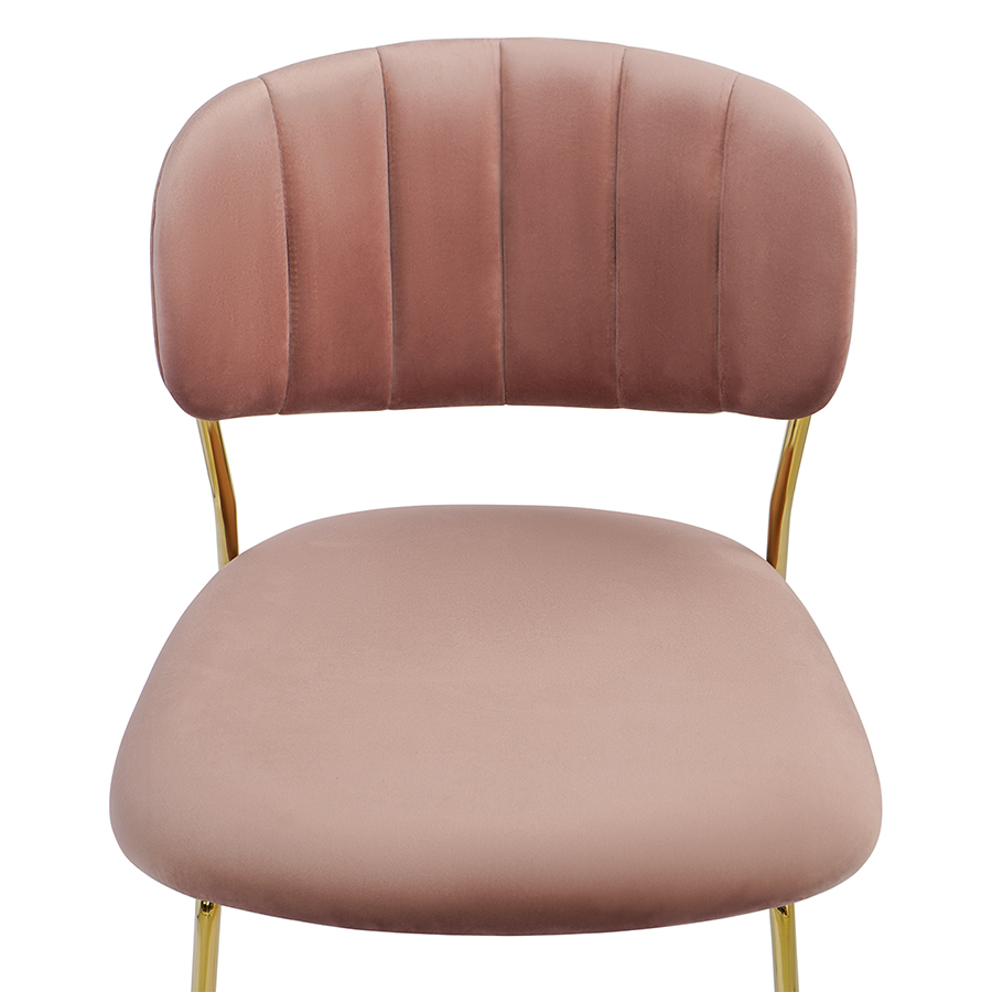 Стул Eirill с обивкой из мягкого, бархатистого велюра смотрится стильно и благородно. Материал приятный на ощупь, износостойкий и нетребовательный в уходе. Комфорт при сидении достигается за счет широкой, полукруглой спинки и глубокой посадки. Плавные формы и декоративная строчка делают дизайн элегантным. Практичность и долговечность мебели обеспечивает прочный и надежный железный каркас. Модель органично вписывается в интерьер, оформленный в скандинавском стиле, эклектика, фьюжн, неоклассика и др.Материалы: 100%, полиэстер, фанера, железо, поролон. Размеры: 59x53x77 см. Высота сиденья: 48 см. Ширина сиденья: 45 см. Глубина сиденья: 44 см. Высота спинки: 30 см. Ширина спинки: 40 см. Максимальная нагрузка: 120 кг.Цвет: розовый.