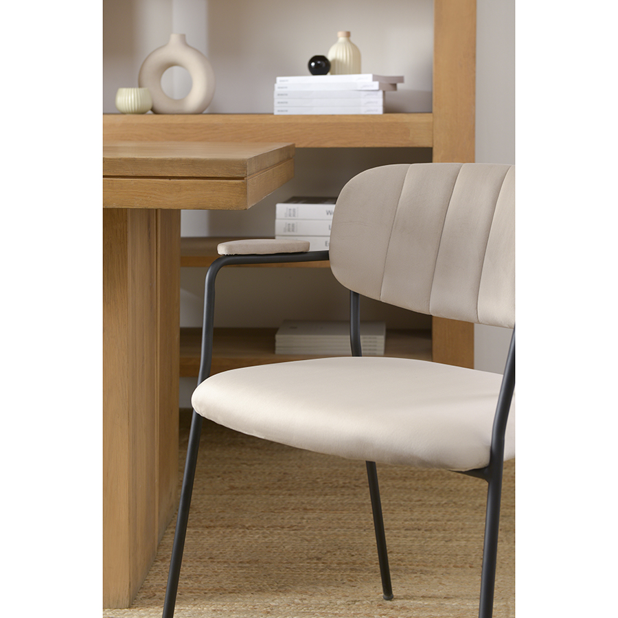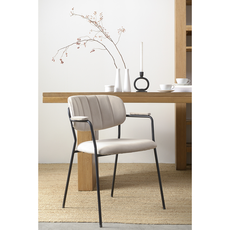 Стул Eirill с обивкой из мягкого, бархатистого велюра смотрится стильно и благородно. Материал приятный на ощупь, износостойкий и нетребовательный в уходе. Комфорт при сидении достигается за счет широкой, полукруглой спинки, глубокой посадки и высоких подлокотников с мягкими накладками. Плавные формы и декоративная строчка делают дизайн элегантным. Практичность и долговечность мебели обеспечивает прочный и надежный железный каркас. Модель органично вписывается в интерьер, оформленный в скандинавском стиле, эклектика, фьюжн, неоклассика и др.Материалы: 100%, полиэстер, фанера, железо, пенополиуретан. Размеры: 59x53x77 см. Высота сиденья: 48 см. Ширина сиденья: 45 см. Глубина сиденья: 44 см. Высота спинки: 30 см. Ширина спинки: 40 см. Максимальная нагрузка: 120 кг. Цвет: серо-бежевый.