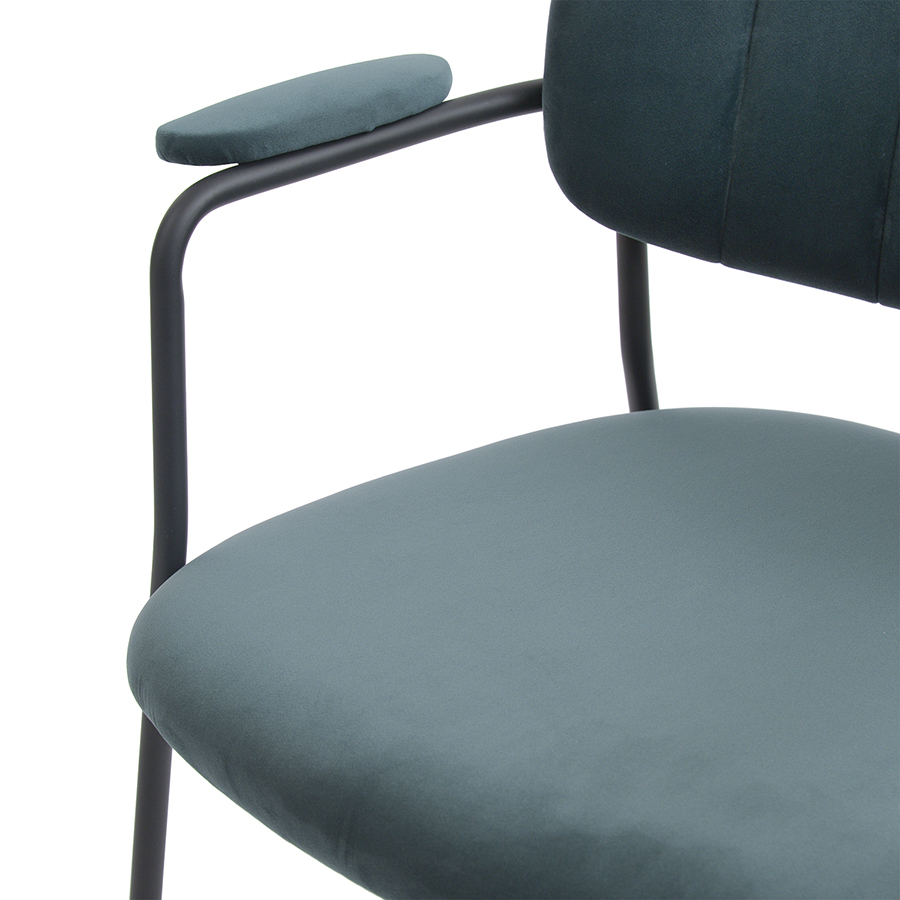 Стул Eirill с обивкой из мягкого, бархатистого велюра смотрится стильно и благородно. Материал приятный на ощупь, износостойкий и нетребовательный в уходе. Комфорт при сидении достигается за счет широкой, полукруглой спинки, глубокой посадки и высоких подлокотников с мягкими накладками. Плавные формы и декоративная строчка делают дизайн элегантным. Практичность и долговечность мебели обеспечивает прочный и надежный железный каркас. Модель органично вписывается в интерьер, оформленный в скандинавском стиле, эклектика, фьюжн, неоклассика и др.Материалы: 100%, полиэстер, фанера, железо, поролон. Размеры: 56x60x76 см. Высота сиденья: 48 см. Ширина сиденья: 45 см. Глубина сиденья: 44 см. Высота спинки: 30 см. Ширина спинки: 40 см. Максимальная нагрузка: 120 кг. Цвет: зеленый.