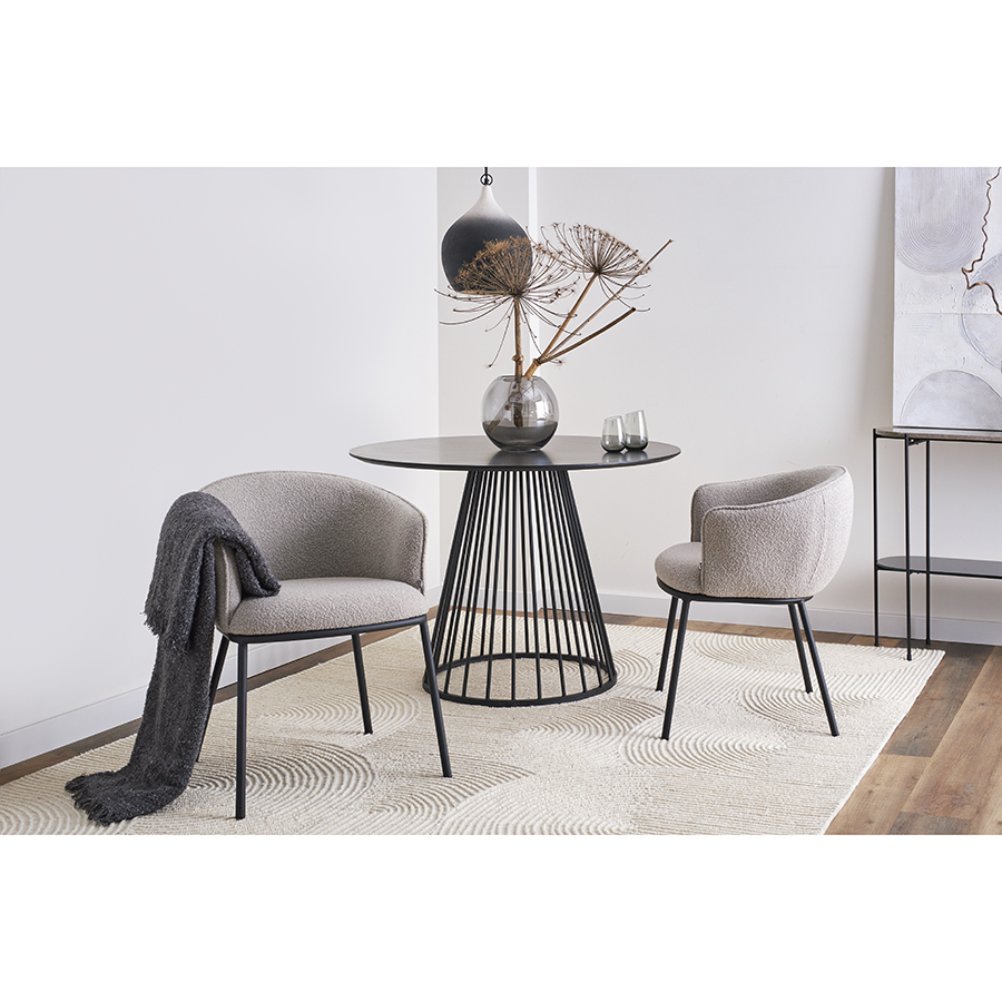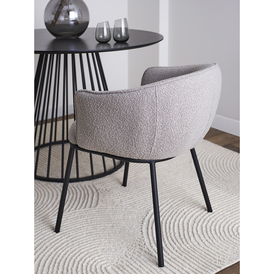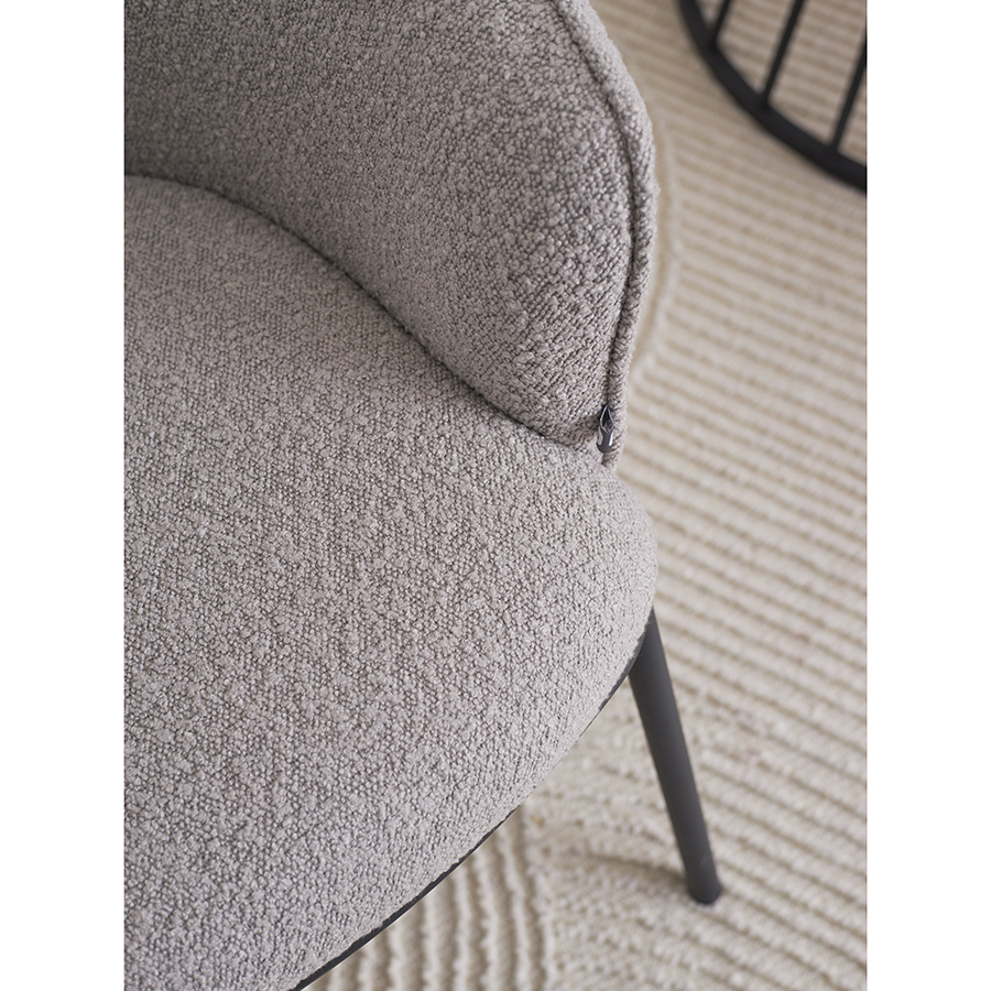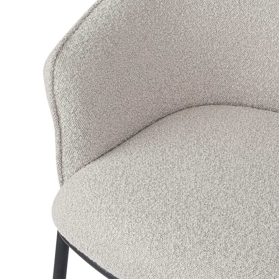 - Обивка из буклированной ткани придает стулу уютный и в то же время элегантный вид, характеризуется высокой устойчивостью к истиранию и износу.