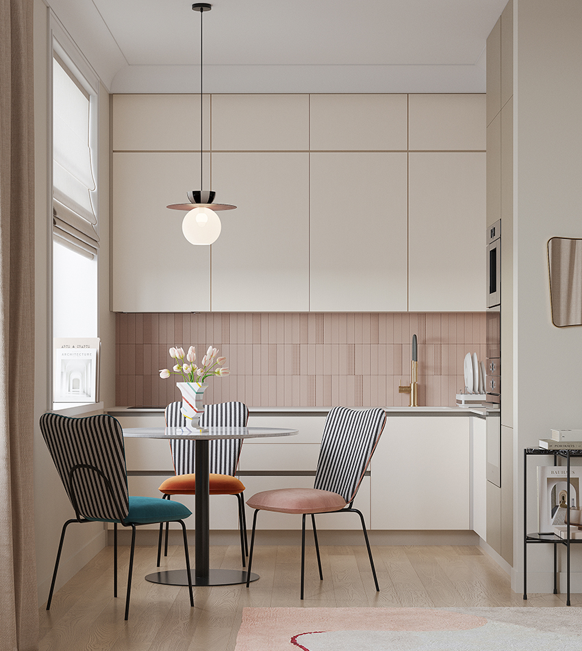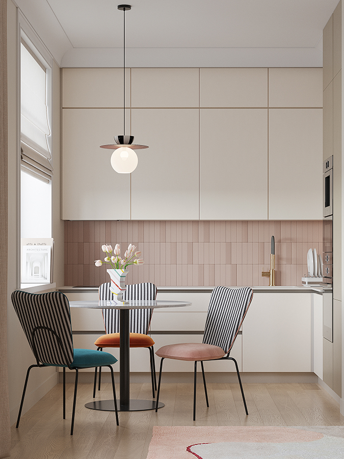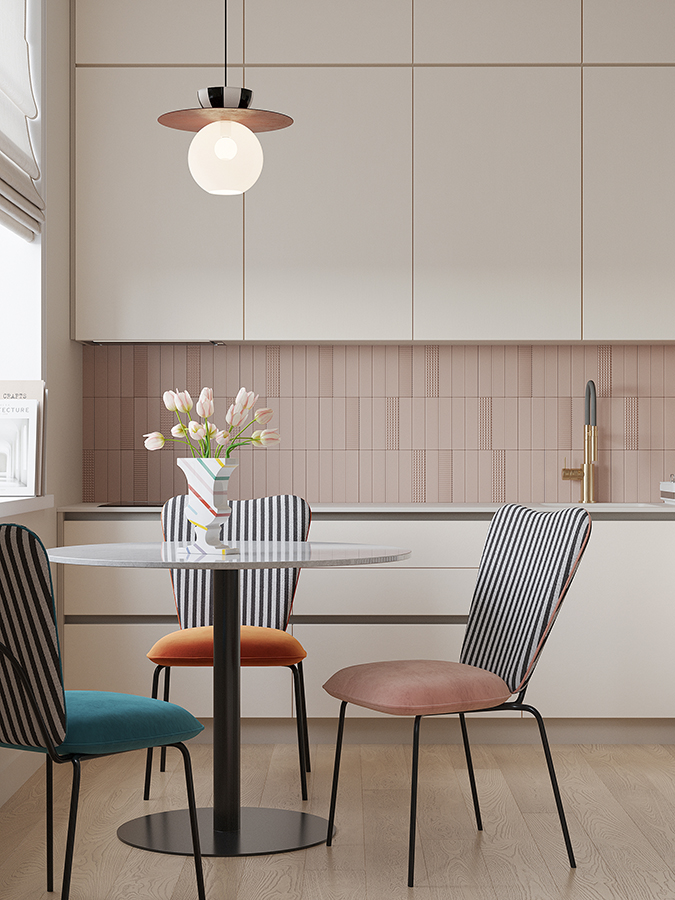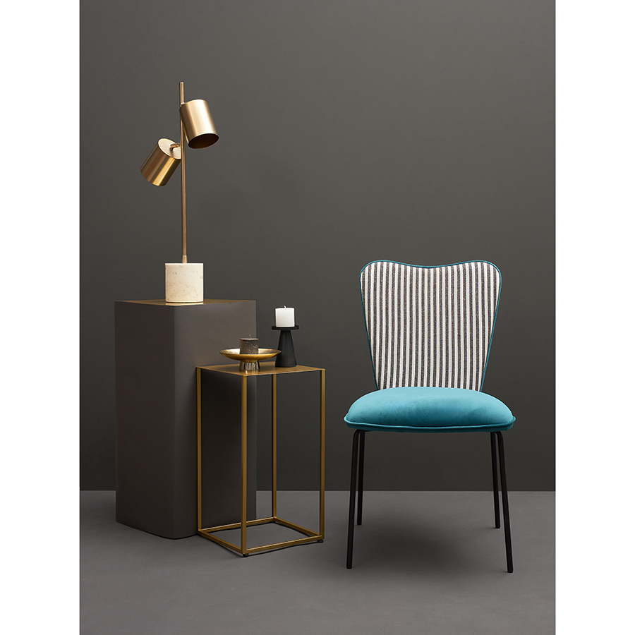 - Спинка необычной формы с полосатым принтом привносит в дизайн интересный акцент.