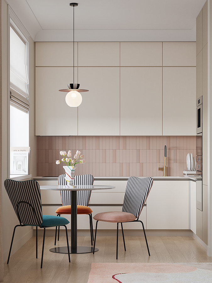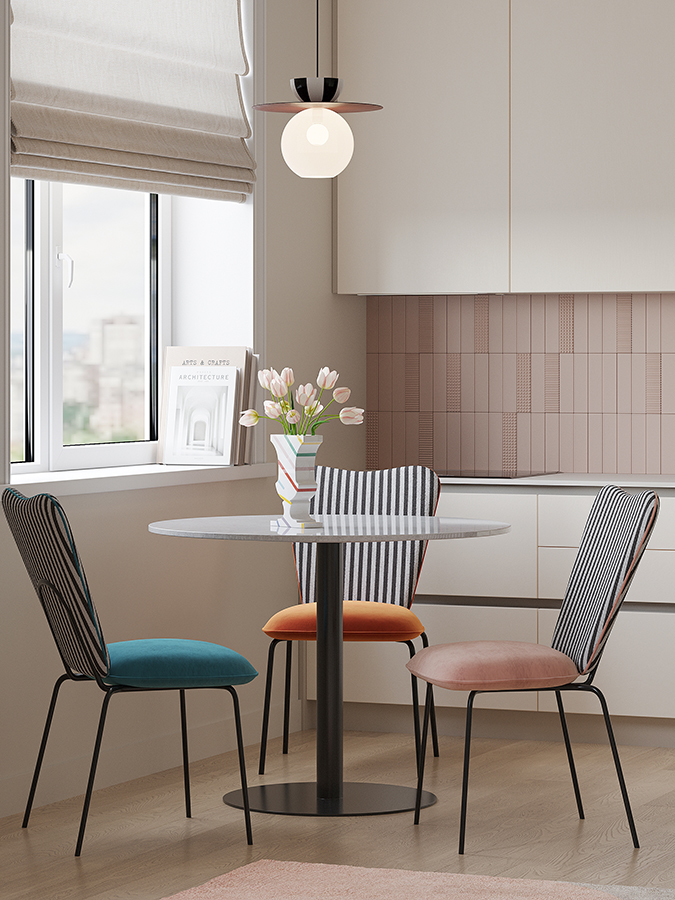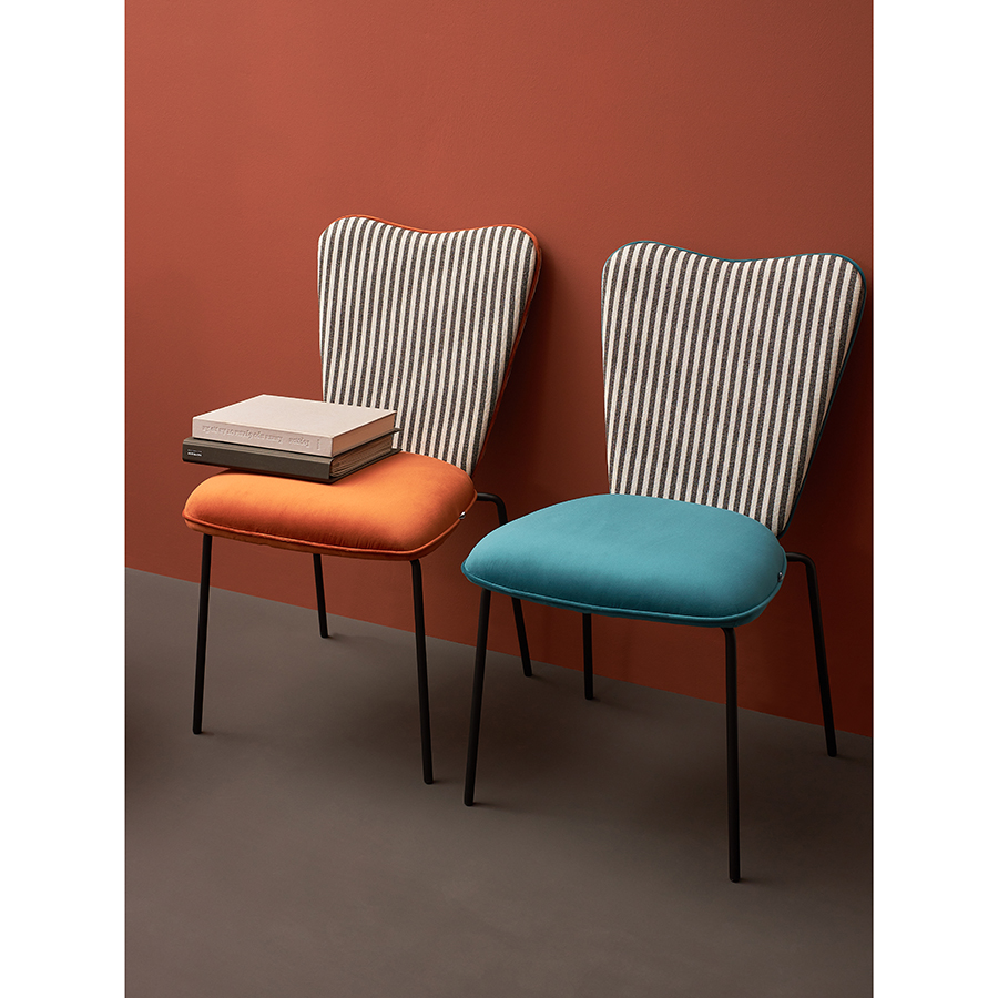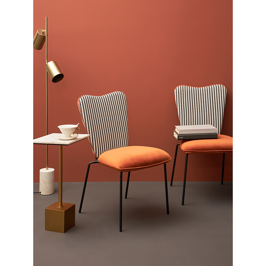 - Спинка необычной формы с полосатым принтом привносит в дизайн интересный акцент.