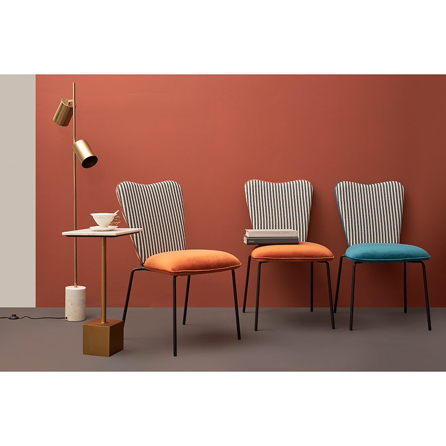- Обивка из велюра, с его бархатистой поверхностью и деликатным блеском, придает стулу элегантный и изысканный вид.