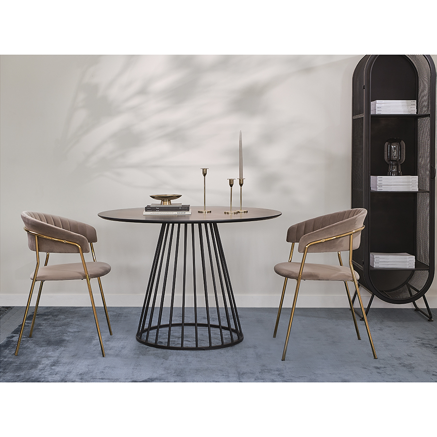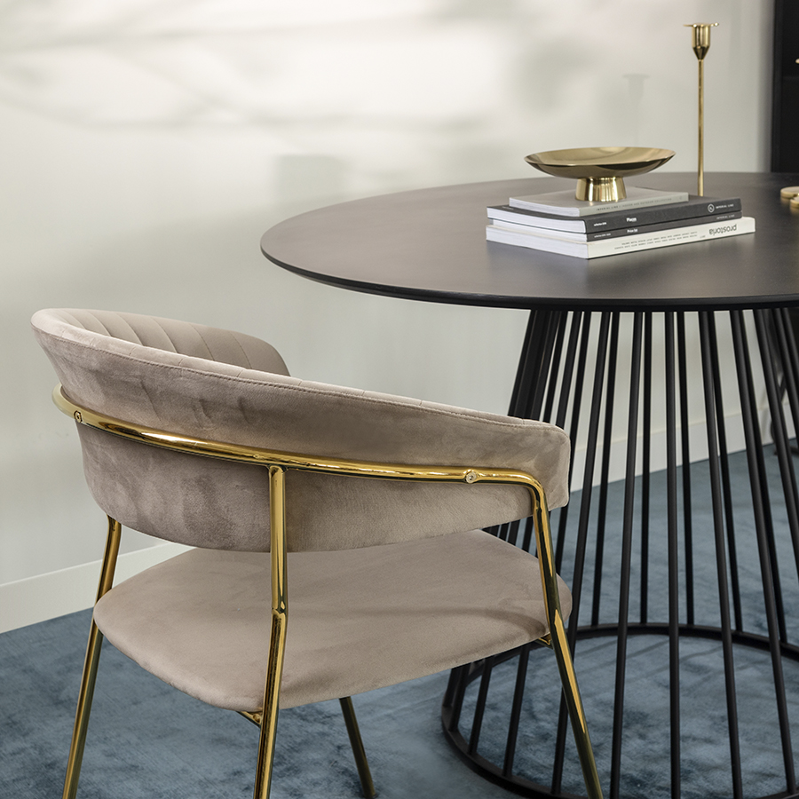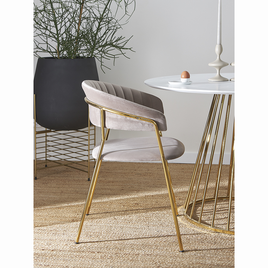 Стул Stefany удачно сочетает комфорт и эстетику. Этот предмет мебели станет заметным акцентом в интерьере и воплощением безупречного вкуса.Мягкие сиденье и спинка, обтянутые велюром, создают комфорт во время отдыха на стуле. Материал с бархатистой фактурой обеспечивает красивый визуальный эффект и дарит приятные тактильные ощущения. Помимо высоких декоративных свойств ткань обивки характеризуется долговечностью и устойчивостью к износу. Железные ножки гарантируют конструкции прочность и надежность. Такой тандем материалов позволяет сочетать стул с различной отделкой и декором.